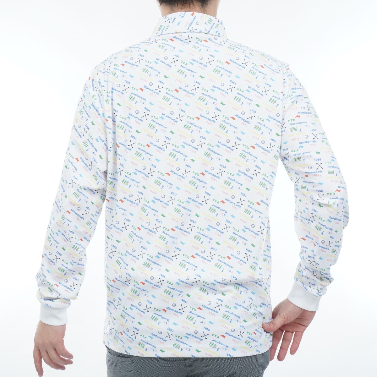 マンシングウェア Munsingwear ストレッチ SUNSCREENロゴグラフィックプリント長袖ポロシャツ M ホワイト 00