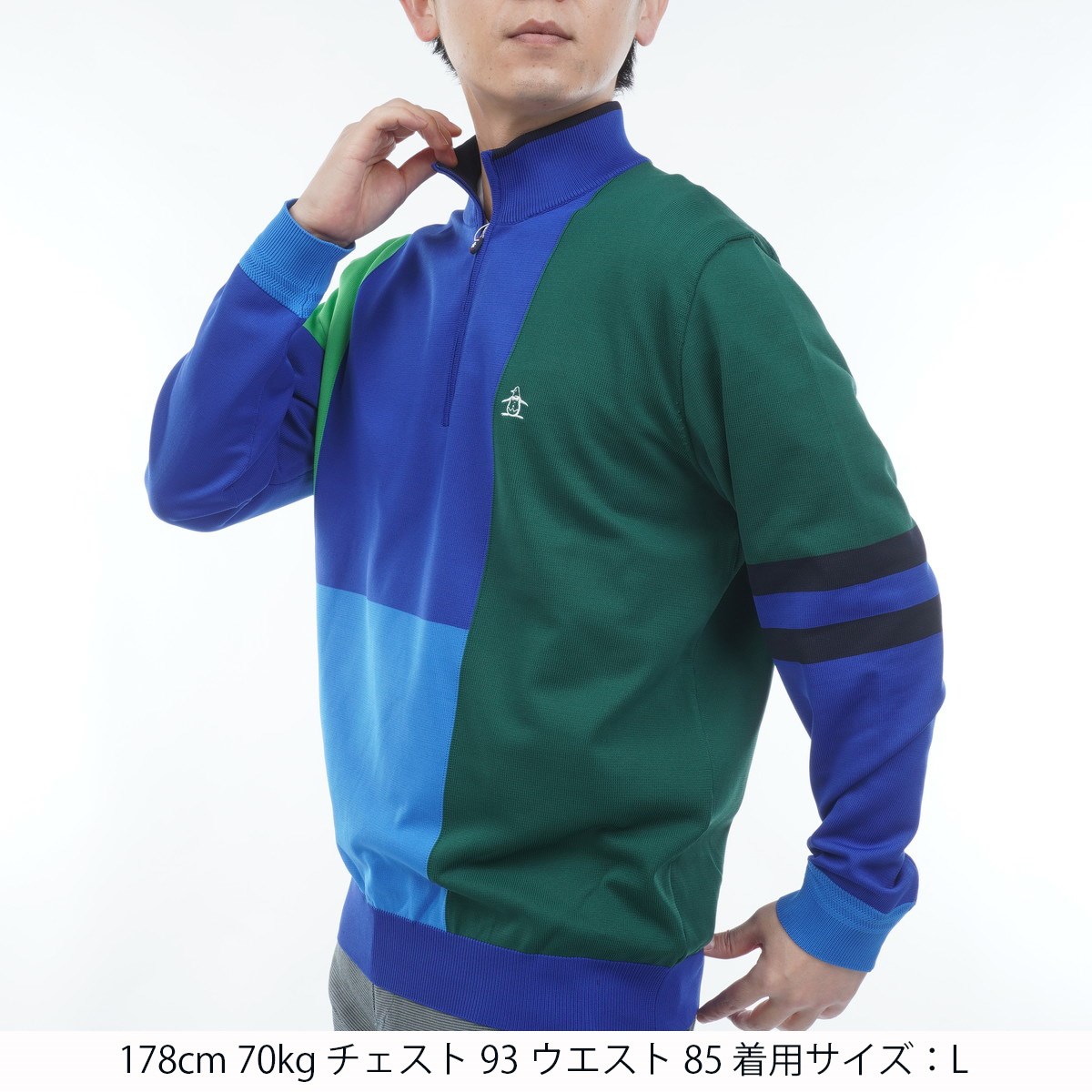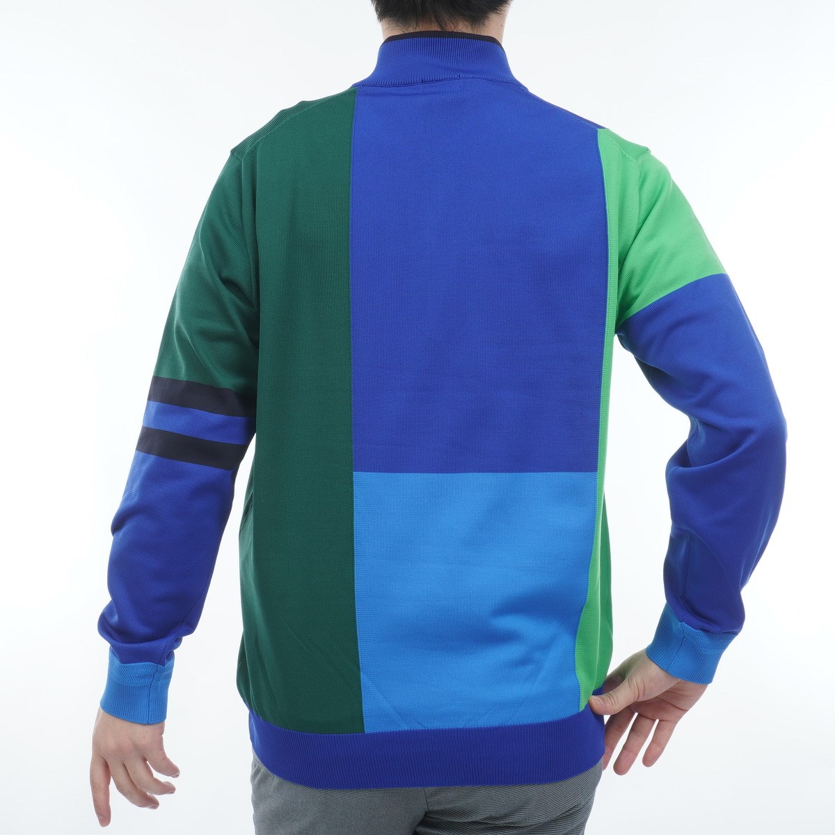 ---スポーティなブロッキング配色でコースに映えるスタンドジップセーター---