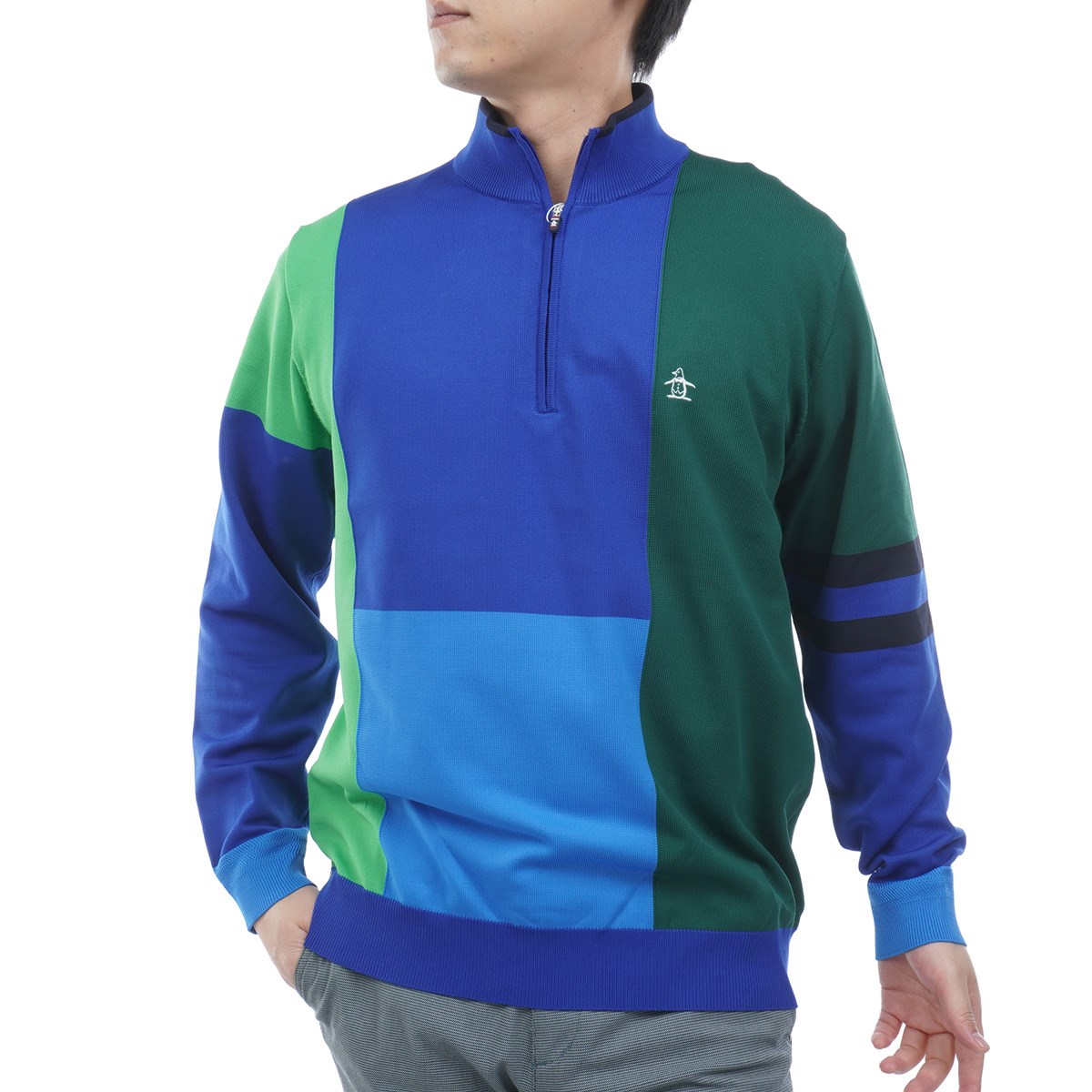 ---スポーティなブロッキング配色でコースに映えるスタンドジップセーター---