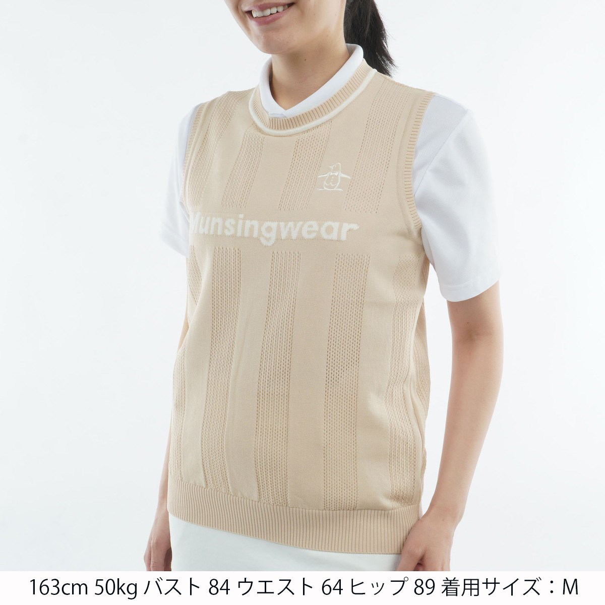 マンシングウェア Munsingwear ロゴメッシュクルーネックニットベスト LL ベージュ 00 レディス