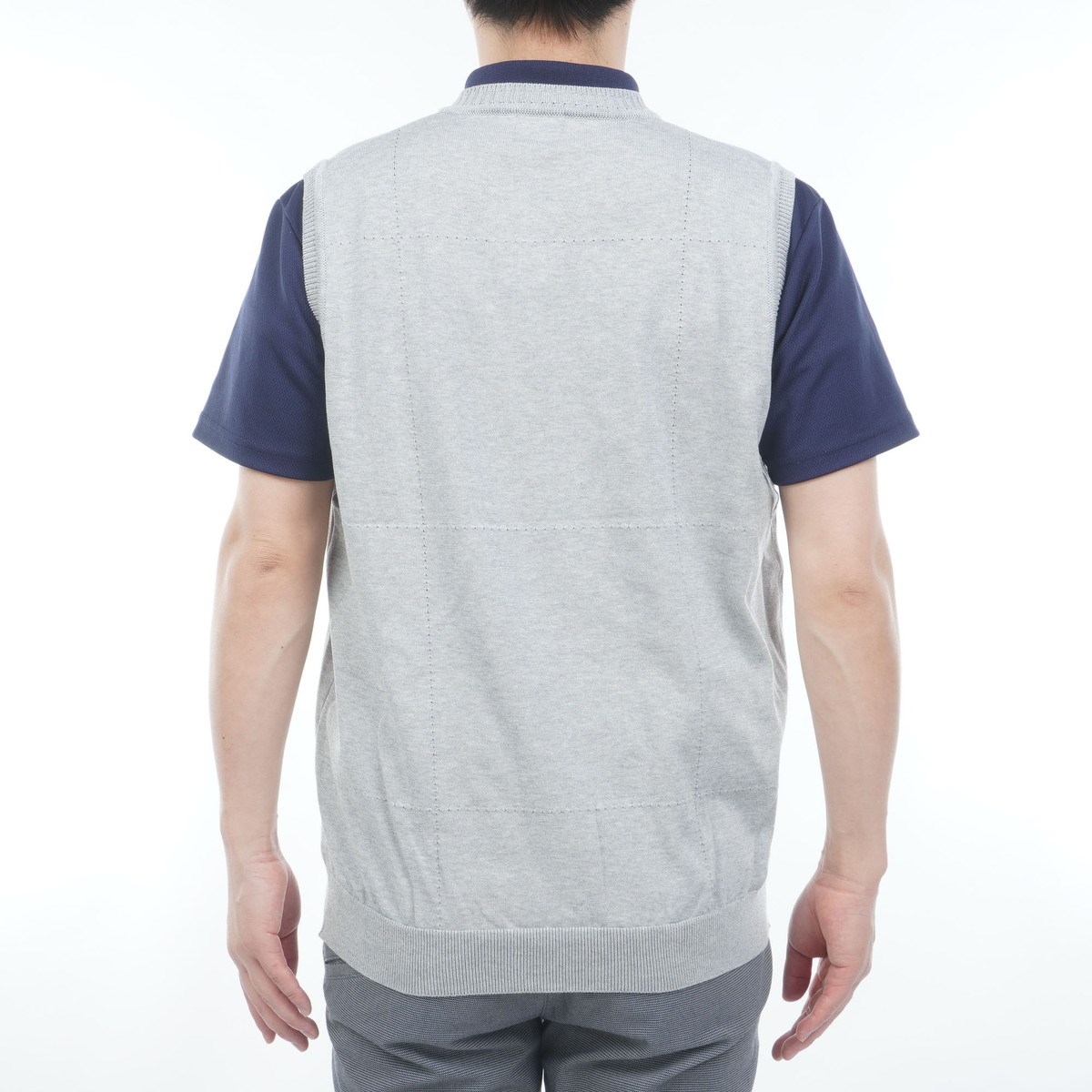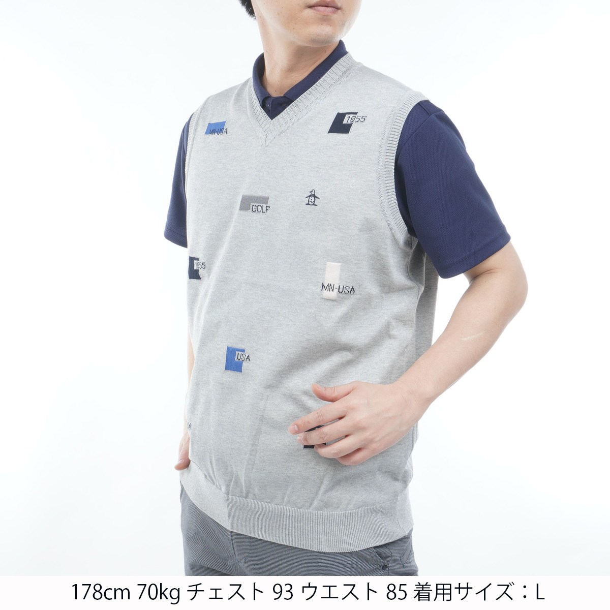 マンシングウェア Munsingwear 飛びロゴインターシャVネックニットベスト LL グレー 00