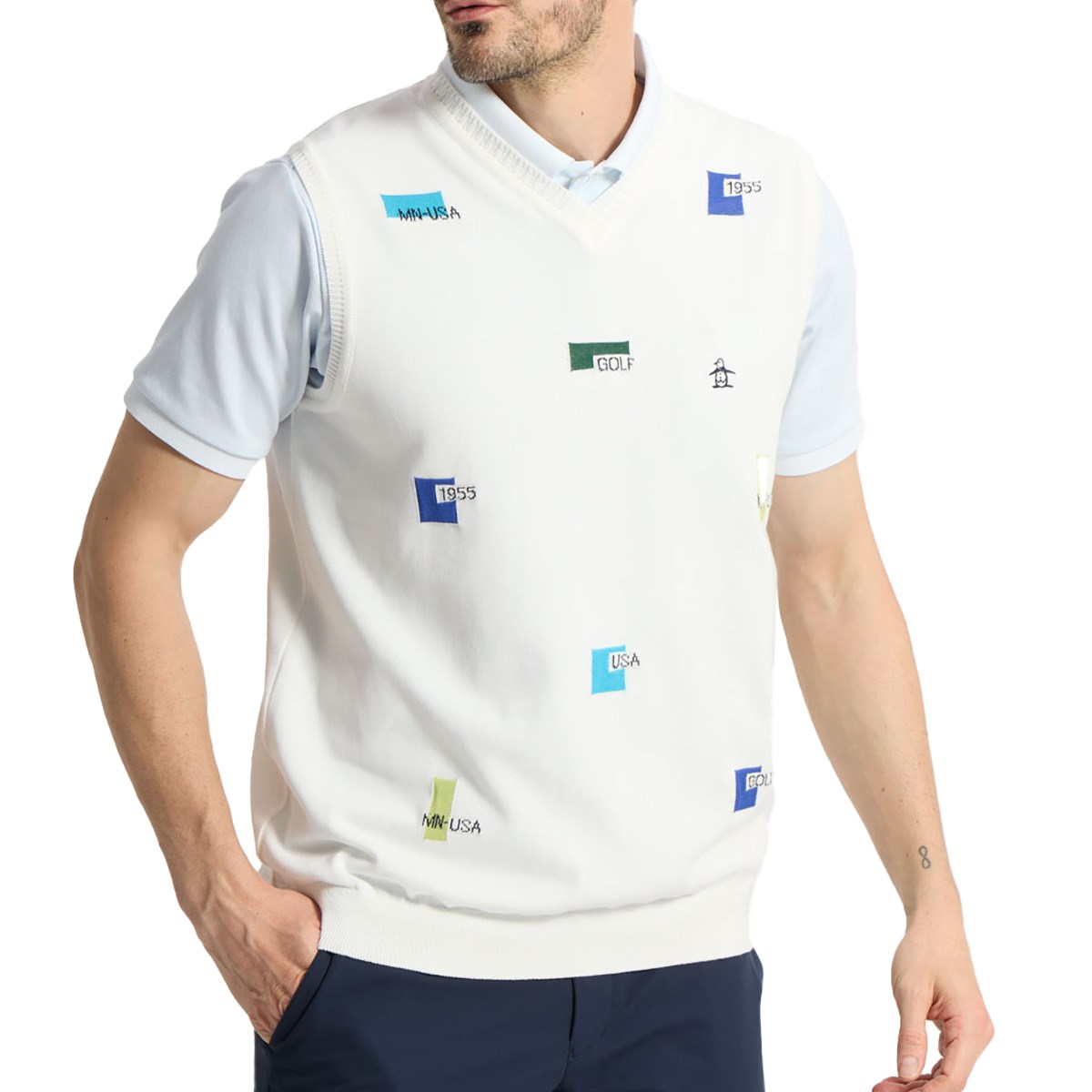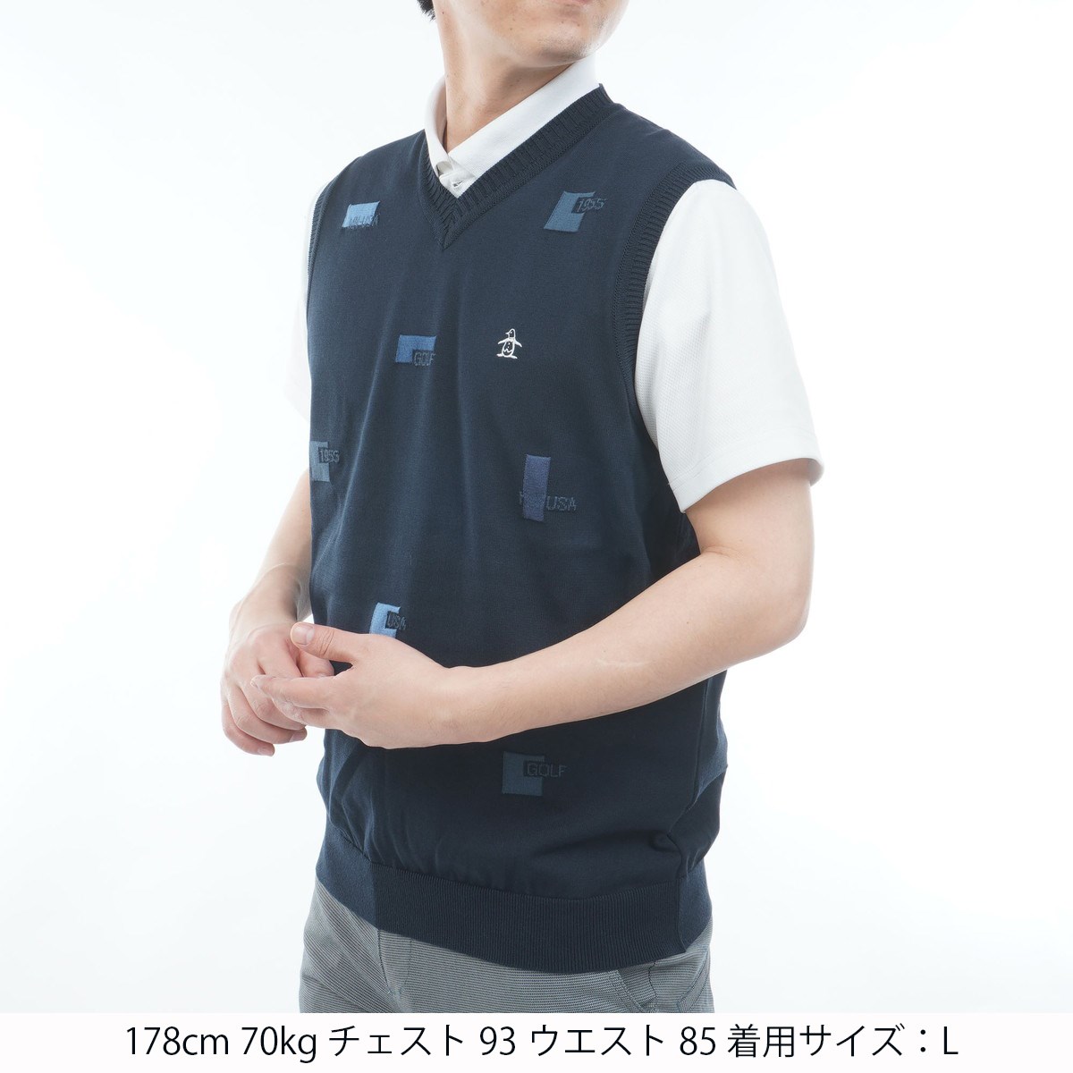 マンシングウェア Munsingwear 飛びロゴインターシャVネックニットベスト M ネイビー 00