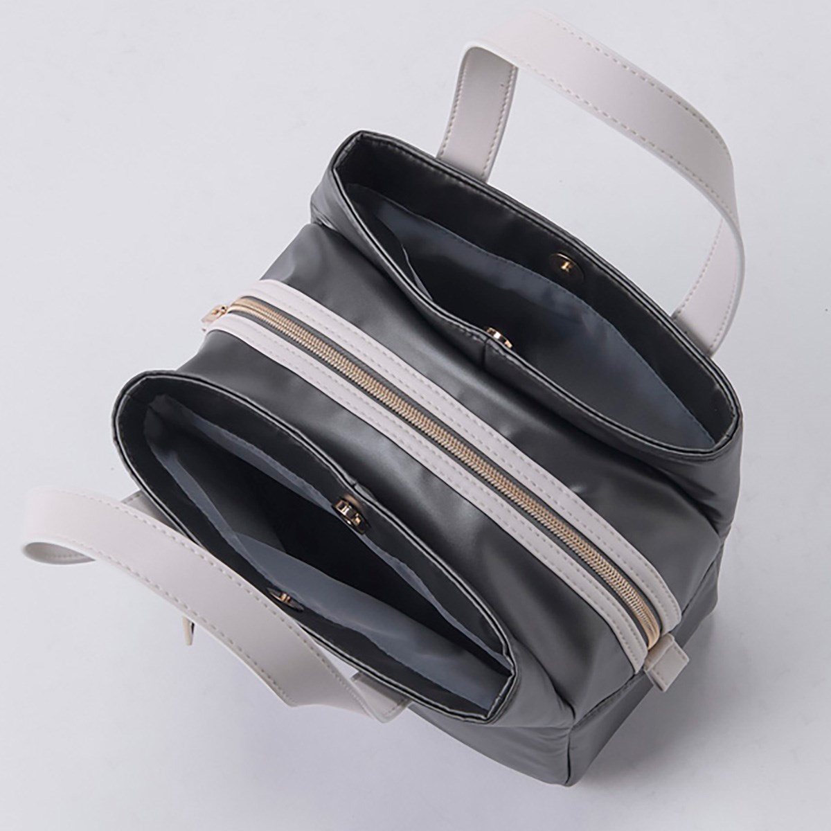 また、前後にマグネットボタン付きのポケットが備わった3層タイプで仕分けに便利。