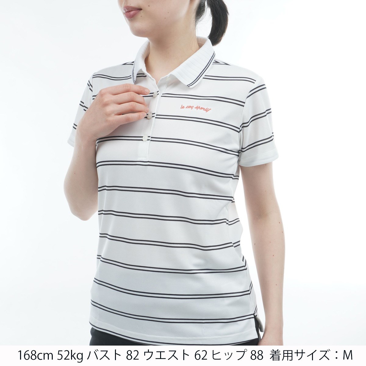 ルコックスポルティフ ゴルフ Le coq sportif GOLF ストレッチ ボーダー半袖ポロシャツ M ホワイト 00 レディス