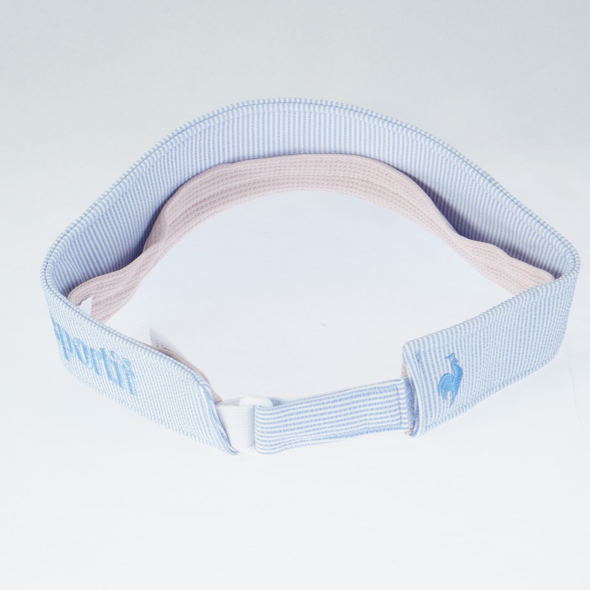 春から夏を通して使えるサッカー素材のストライプ柄のサンバイザー。