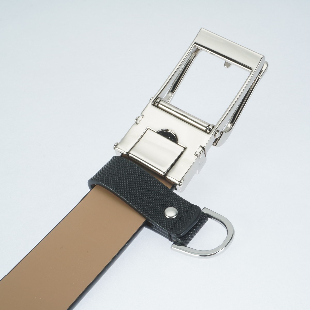 ・ベルトの帯部分に、高級感のあるシボ(シュリンクレザー)風の型押しを施した上品なスキニーベルトです。