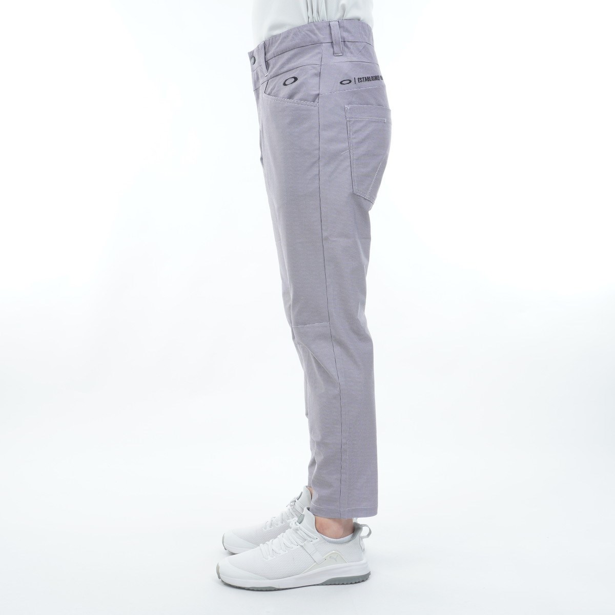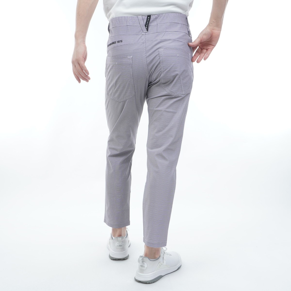 ゴルフ定番の千鳥格子をプリントでアレンジしたテーパードパンツ。