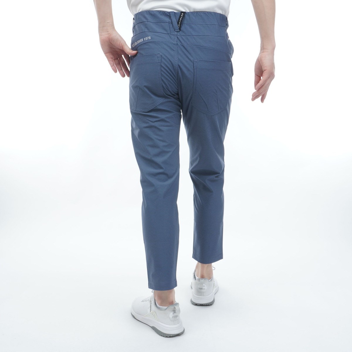 ゴルフ定番の千鳥格子をプリントでアレンジしたテーパードパンツ。
