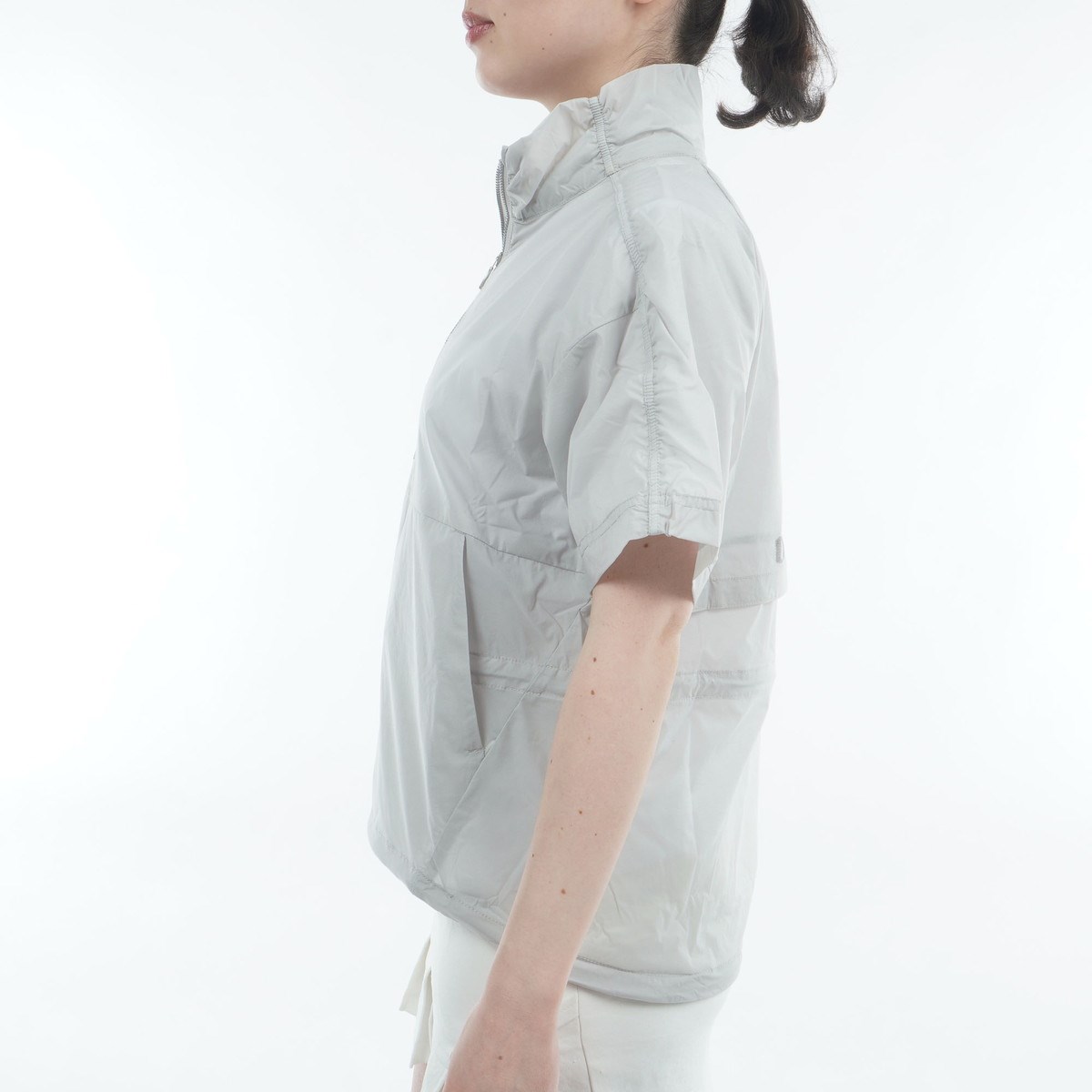 防風、撥水機能を持ったストレッチ素材を採用し、軽さに特化した半袖ウインドジャケット。