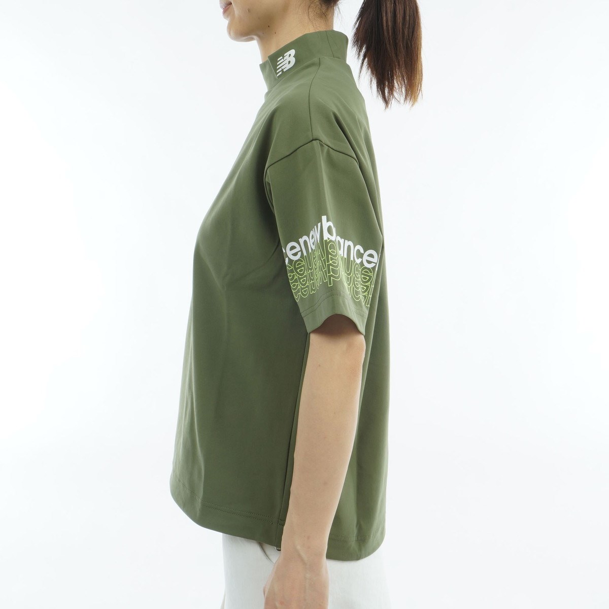 ニューバランス New Balance Golf ストレッチ フルダルダブルフェイス 5分袖モックネックプルオーバー 2 ダークオリビン 180 レディス
