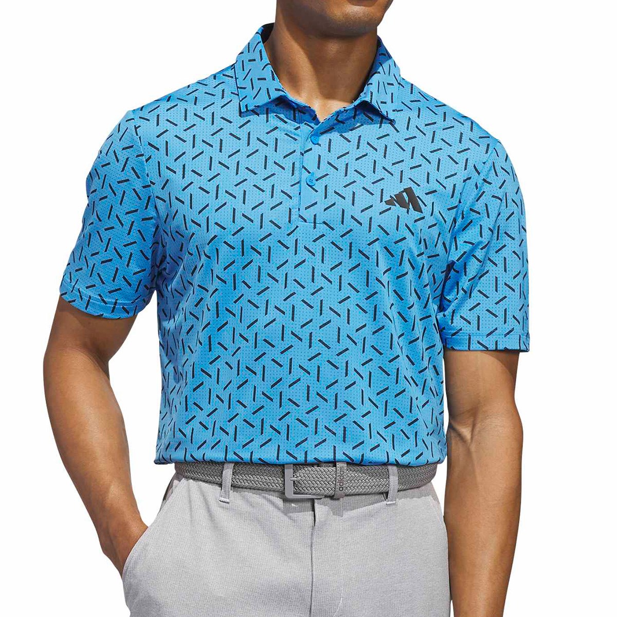 アディダス Adidas ストレッチ クライマクール レクタングル プリント メッシュ 半袖ポロシャツ J/XL ルシッドレイブルー