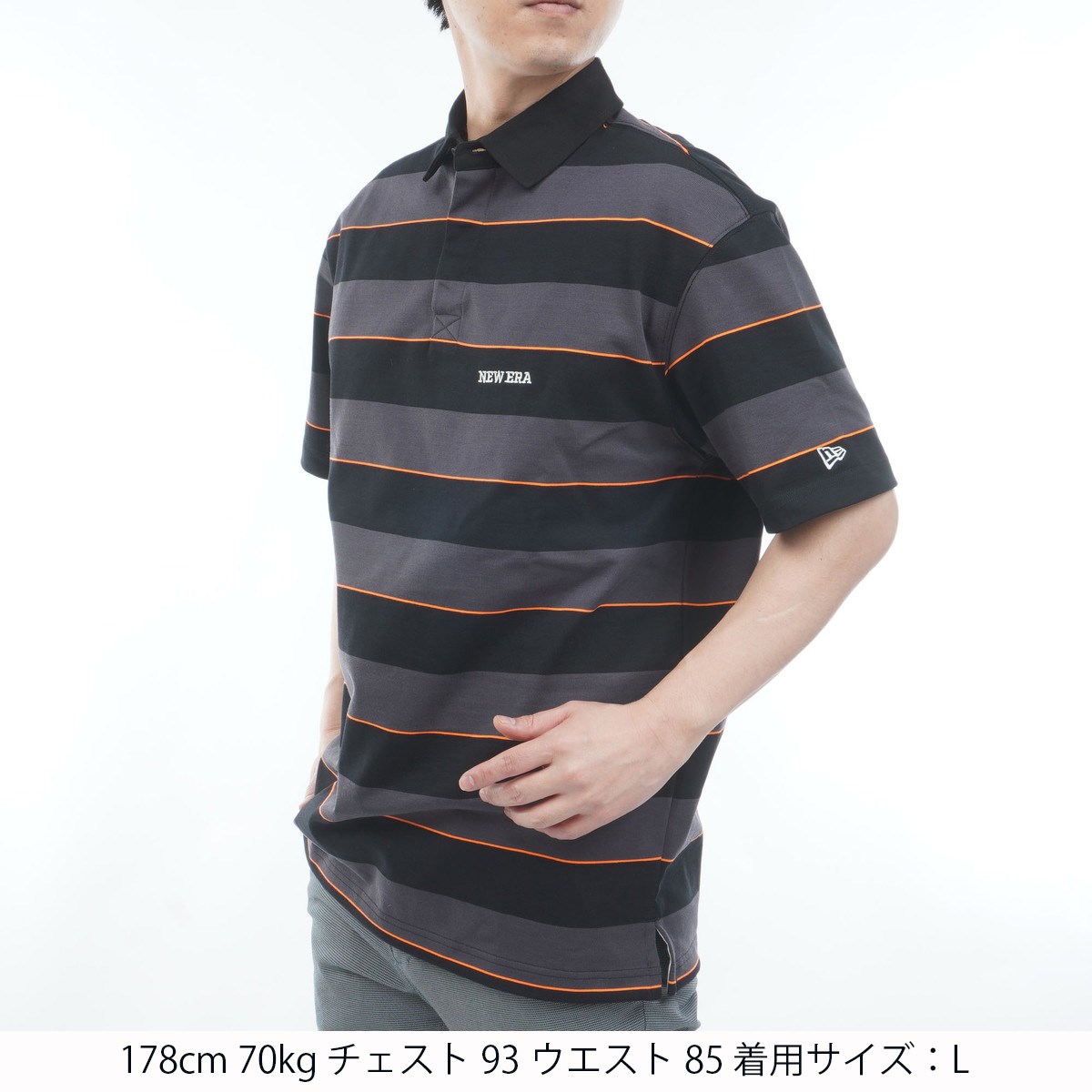 ニューエラ NEW ERA GOLF GF 261 半袖ラグビーポロシャツ XL チャコールグレー/ブラック