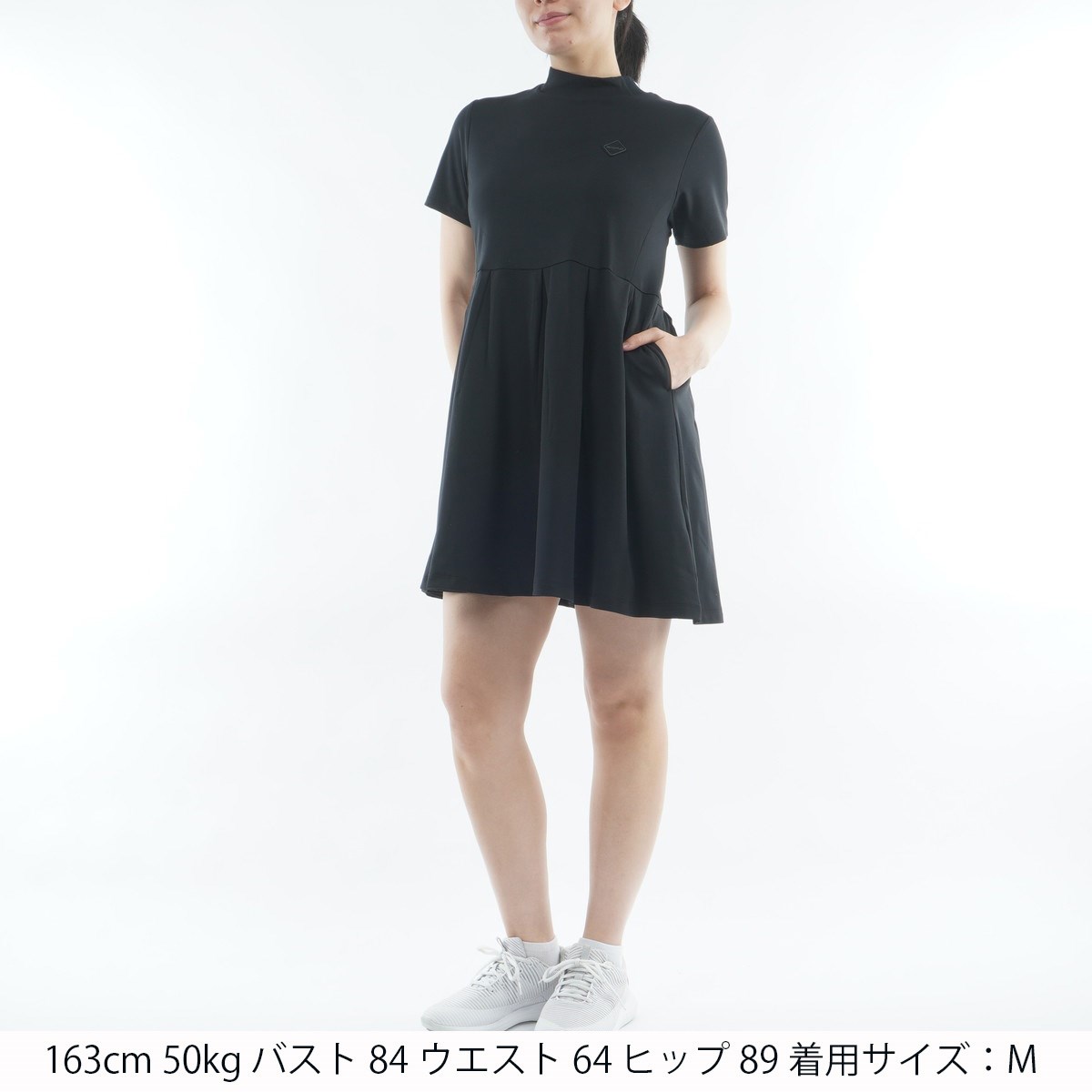 1枚でコーデが完成する存在感あるデザインが魅力のハイネックワンピースは、ゴルフコーデの主役アイテムに最適です。