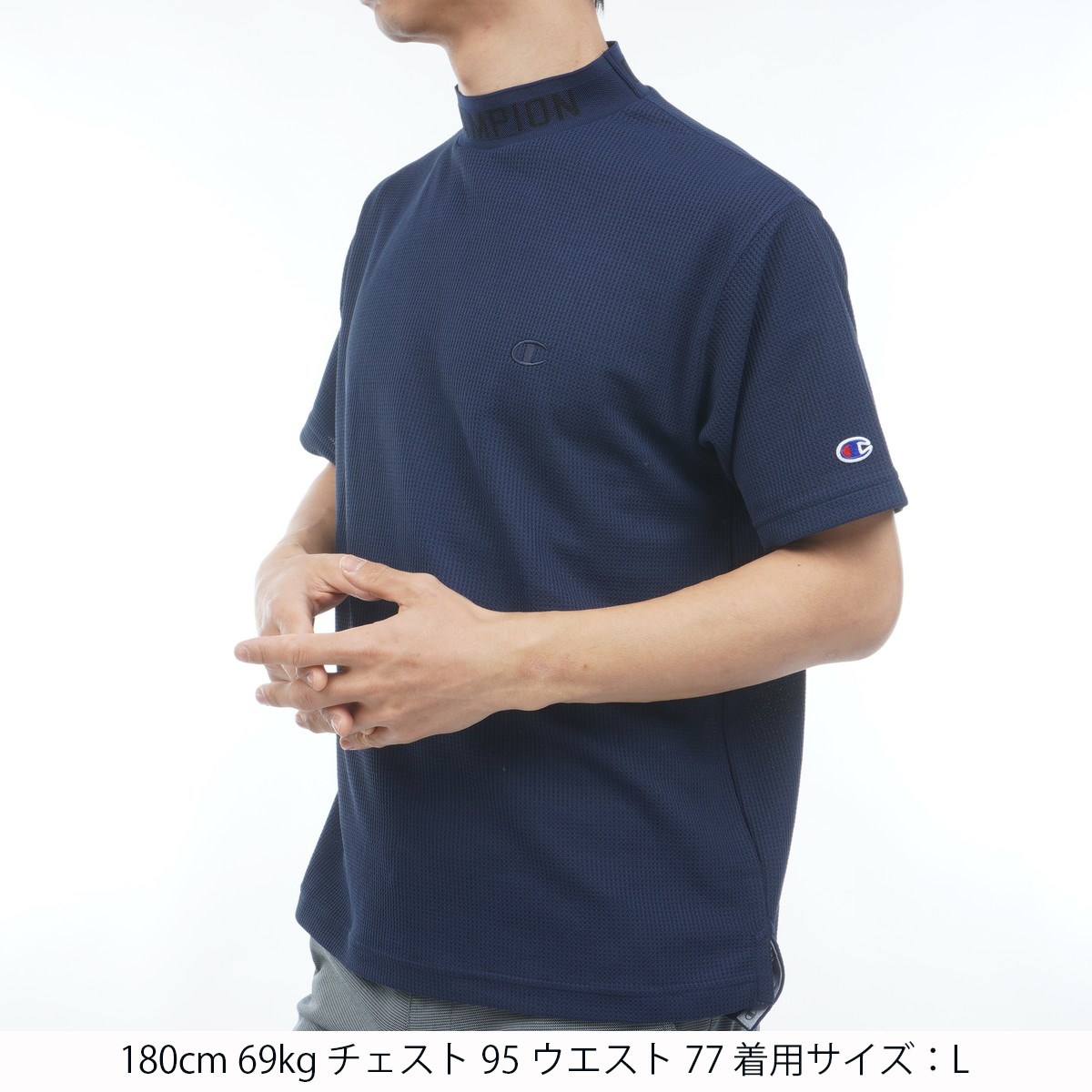 チャンピオンゴルフ Champion GOLF ライトドライワッフルプラス モックネック半袖シャツ M ネイビー 370