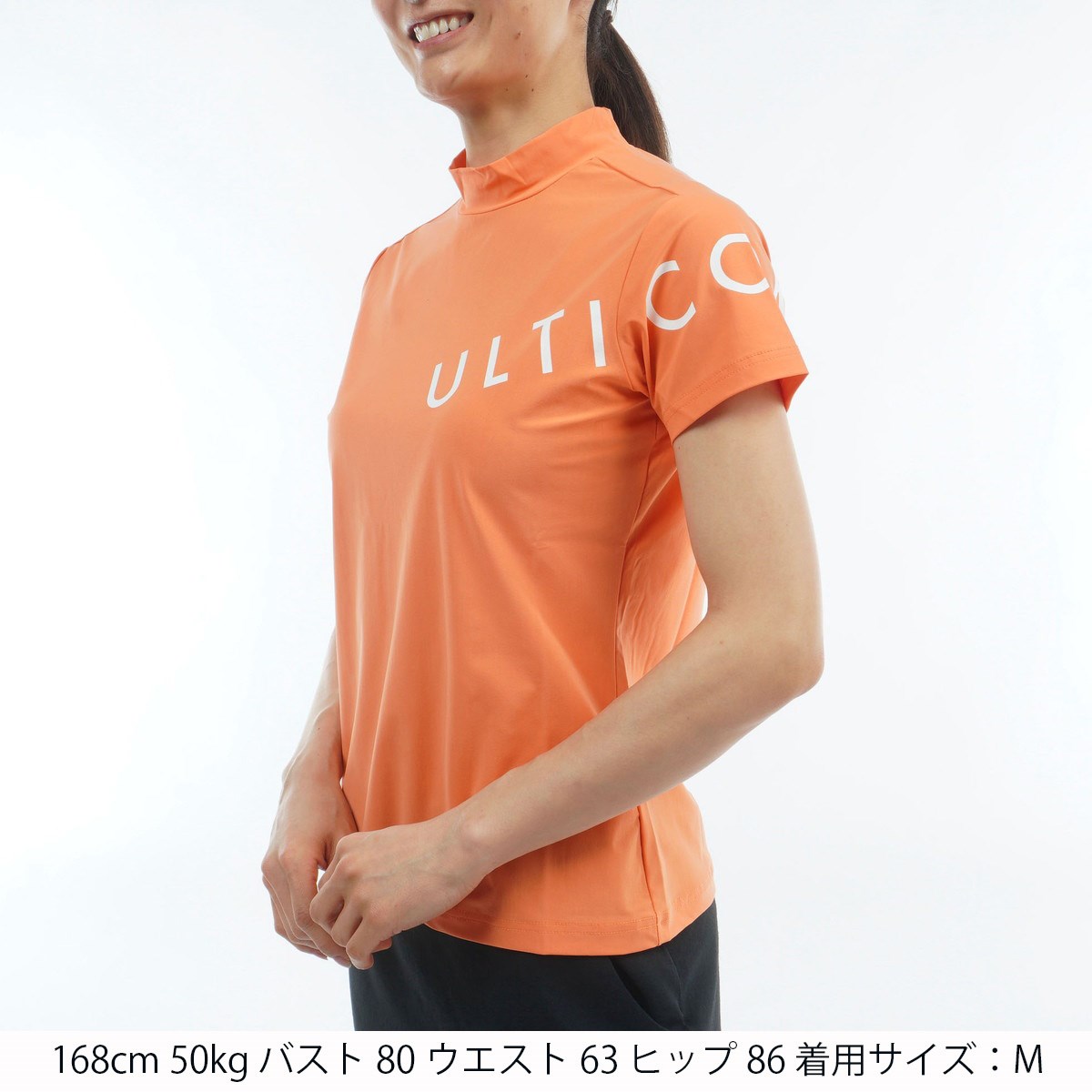 ULTICOREロゴが印象的なシンプルな半袖モックネックシャツ。