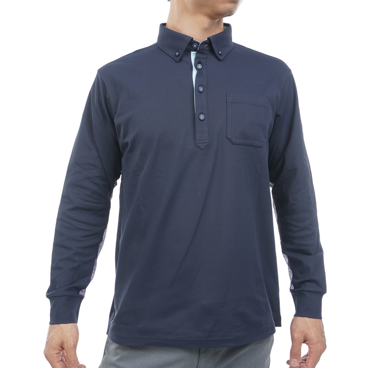 袖部内側にメッシュ切り替えが入り、蒸れにくい長袖ポロシャツ。
