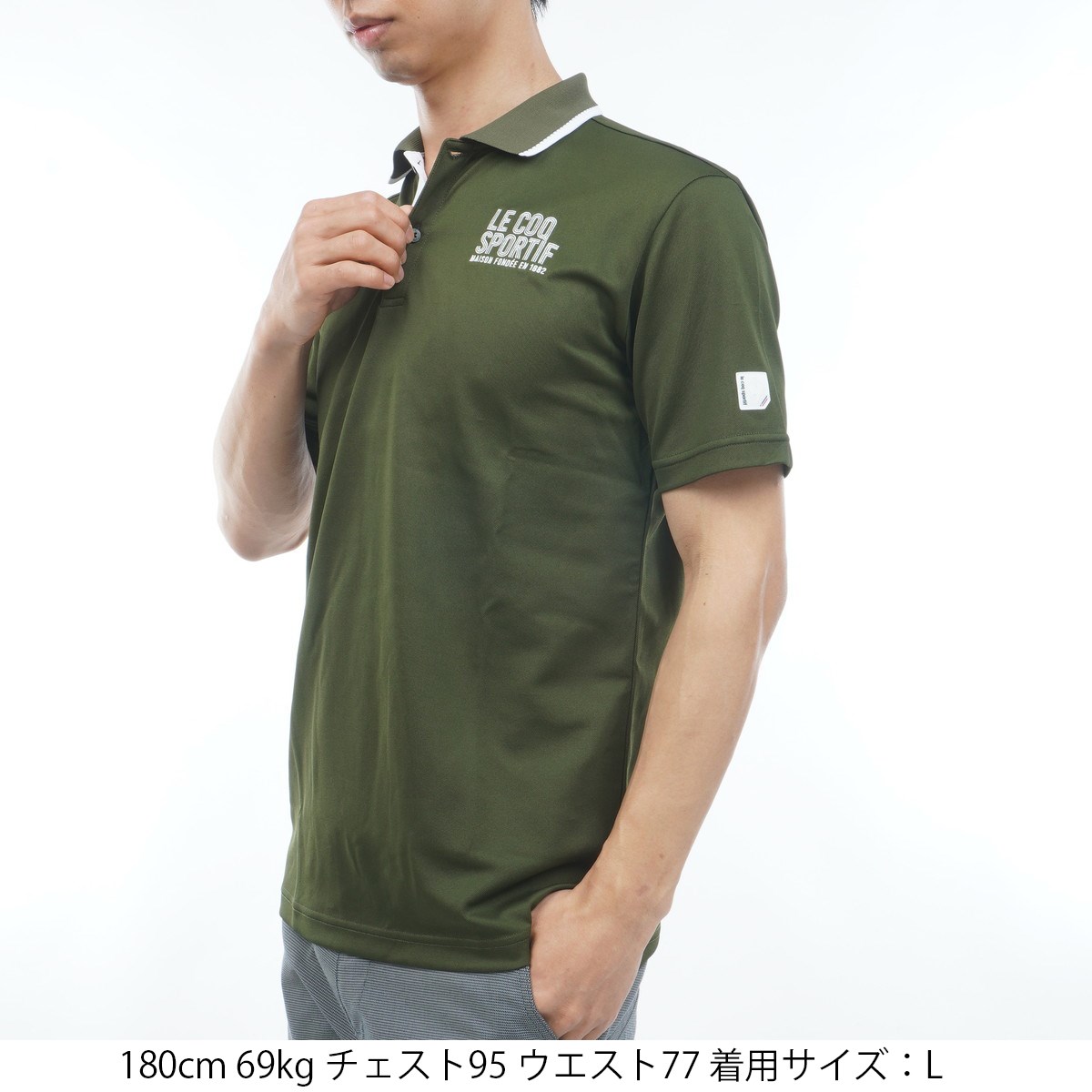 ルコックスポルティフ ゴルフ Le coq sportif GOLF ストレッチ マーキングデザイン半袖ポロシャツ L カーキ 00