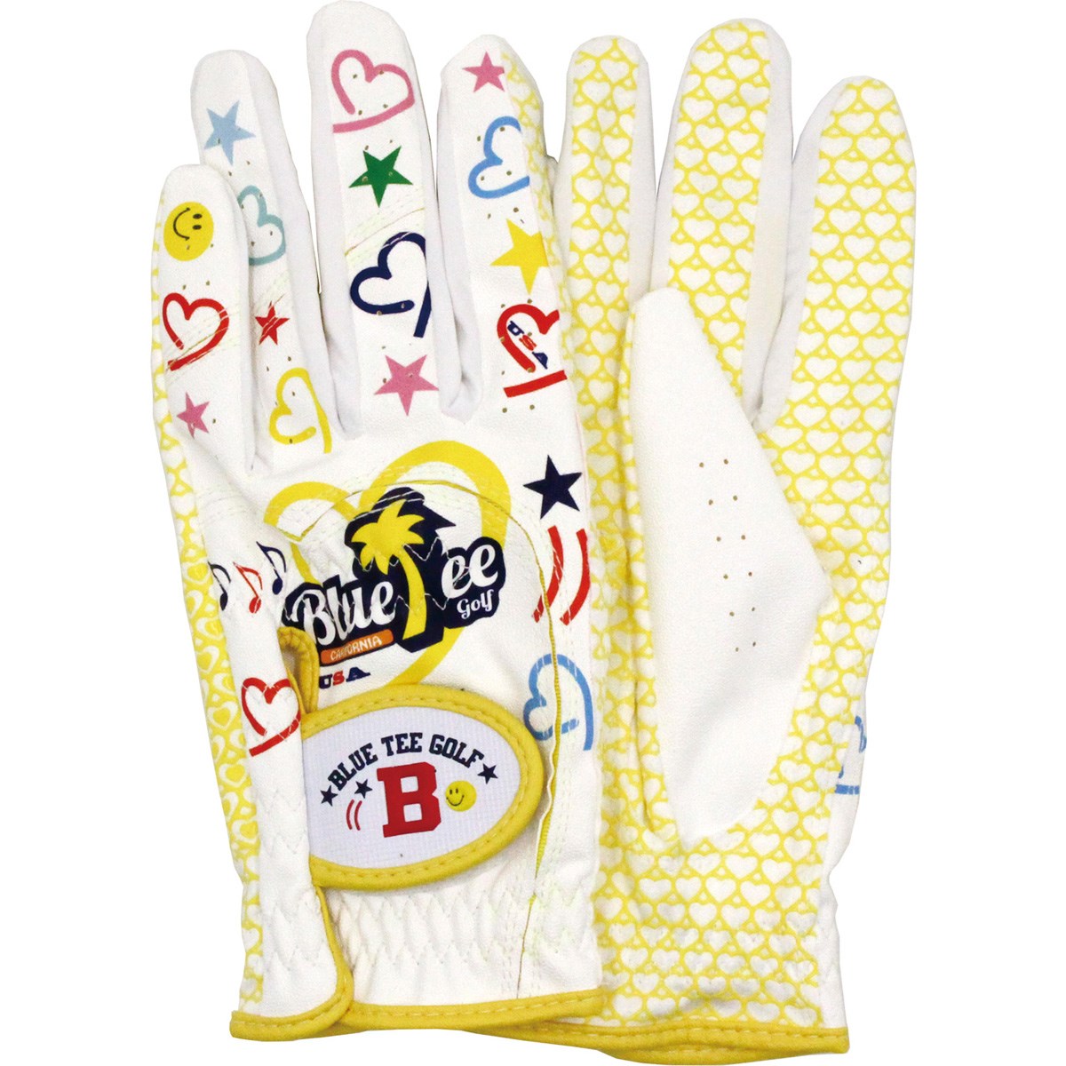 ブルーティーゴルフ BLUE TEE GOLF ハート ストレッチゴルフグローブ 両手用 19cm 両手用 イエロー レディス