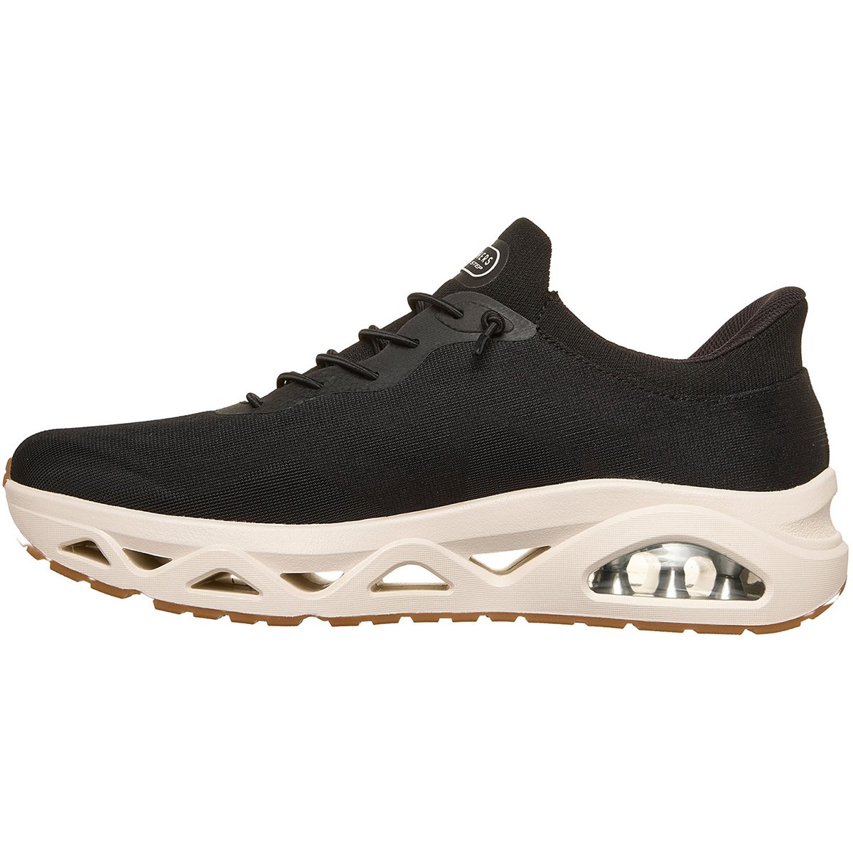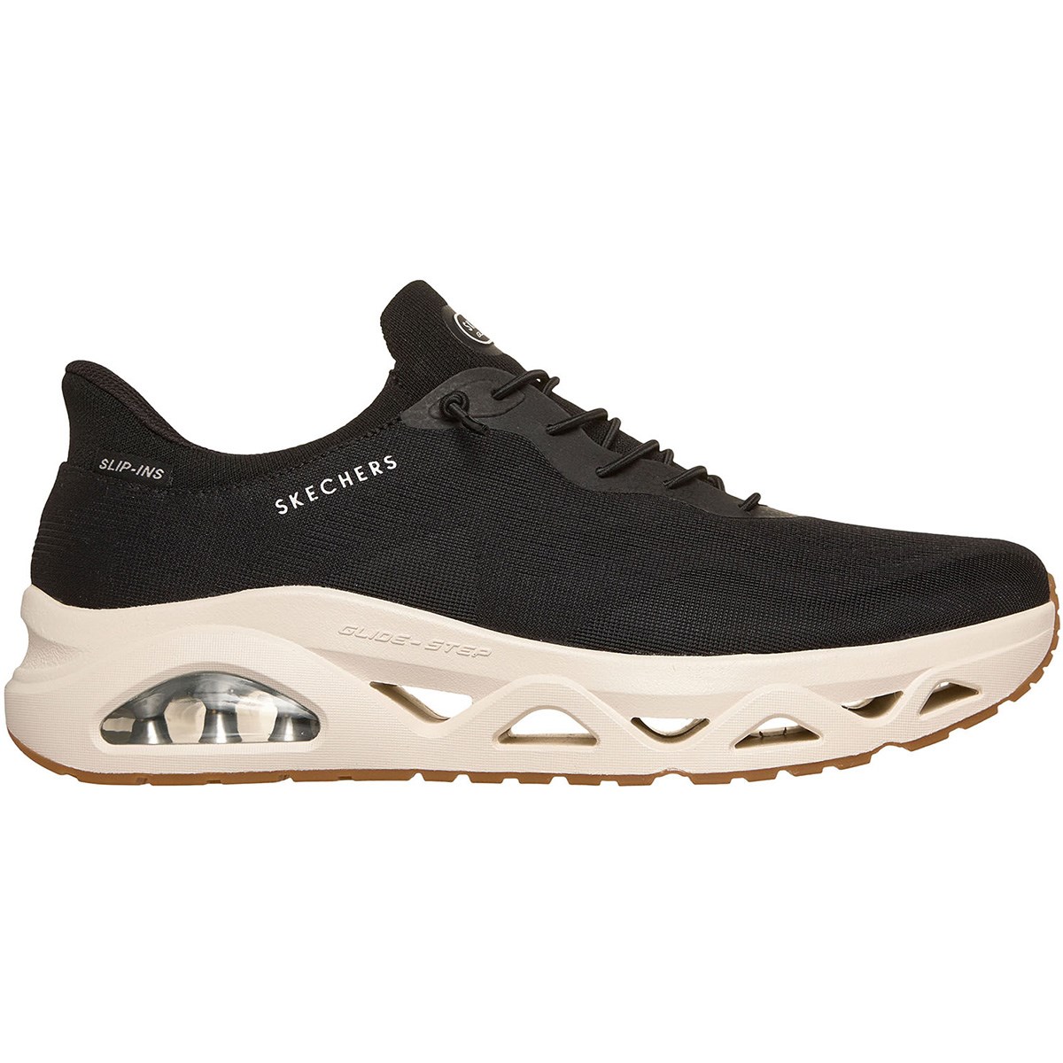 固定式ストレッチレースを配したエンジニアードメッシュのアッパー、クッション性のあるSkechers Air-Cooled Memory Foam(スケッチャーズ エアクールドメモリーフォーム)インソール、ビジブル構造のSkech-Air(スケッチエア)エアバッグを組み合わせたGlide-Step(グライドステップ)ジオメトリックミッドソールが特長です。