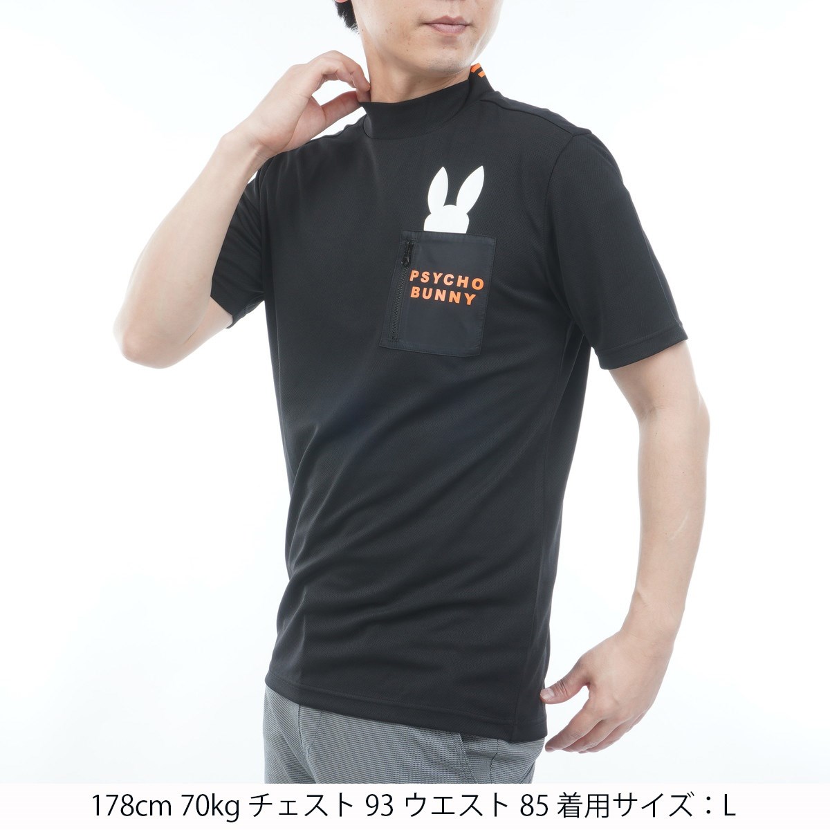 サイコバニー PSYCHO BUNNY GOLF ポケットバニー モックネック半袖Tシャツ L ブラック