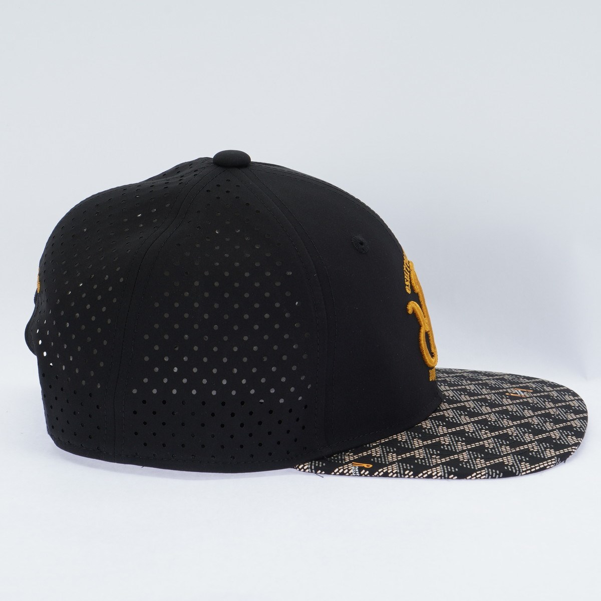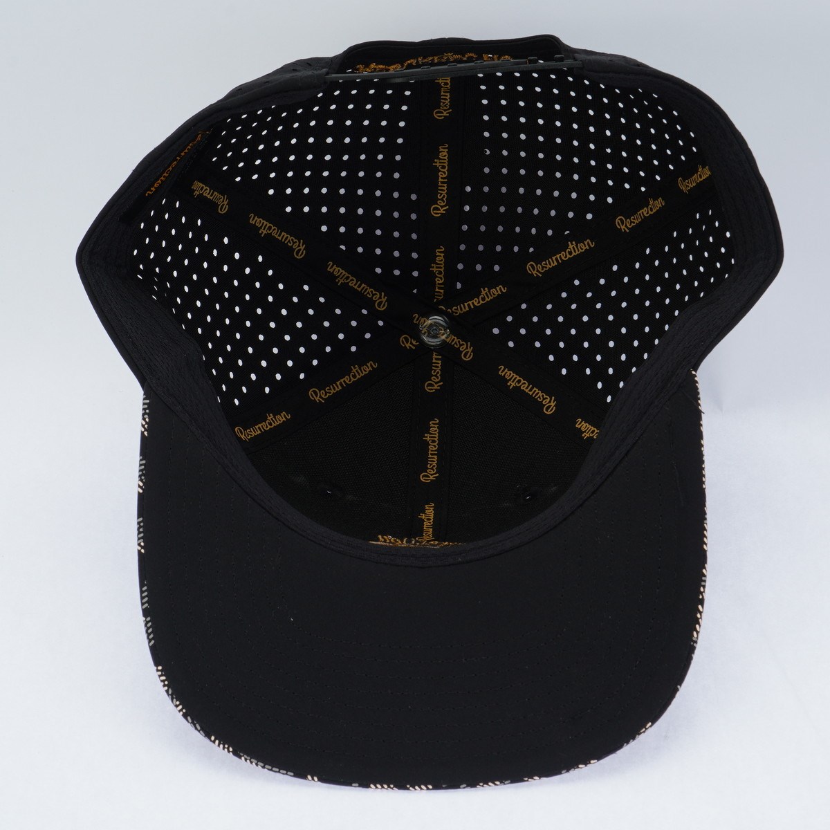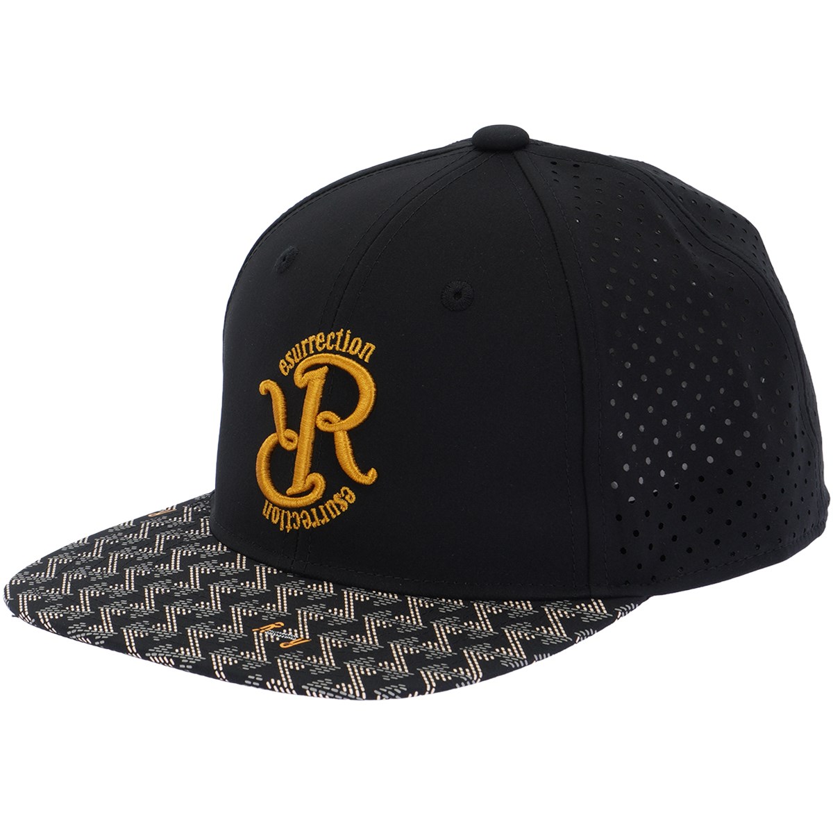ツバ部分には、レザレクションを象徴する幾何学模様をプリント。
