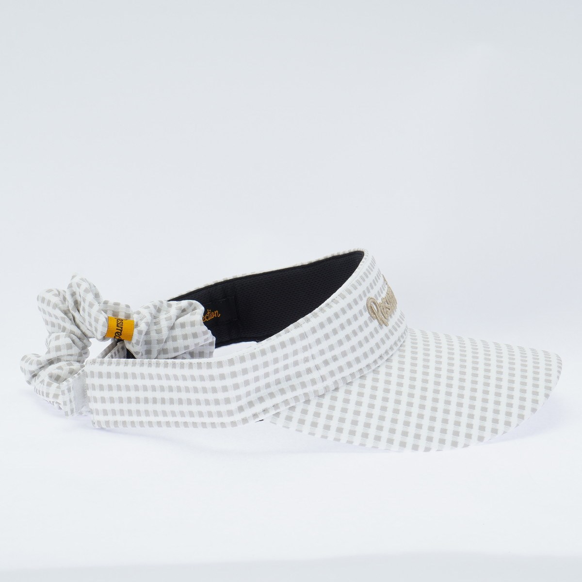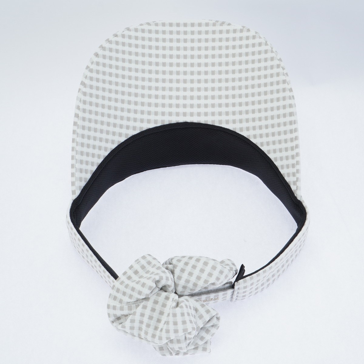 スタイリングに華やぎを添える、シュシュ付きサンバイザー