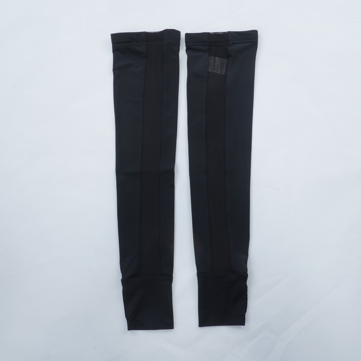 手の甲までガードする指穴付きロング丈、メッシュ切替アームカバー。