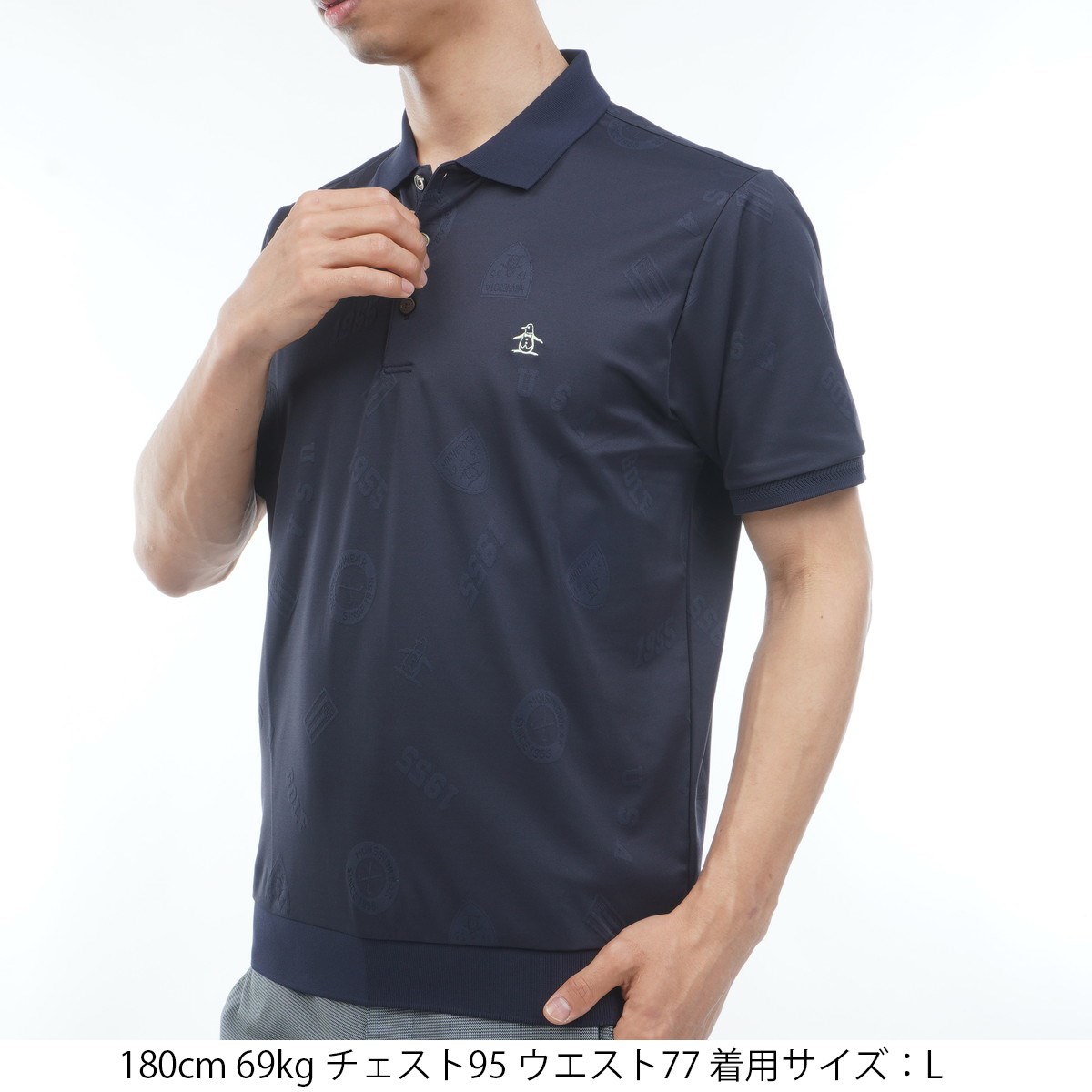 マンシングウェア Munsingwear ストレッチ ロゴジャカード半袖ポロシャツ 3L ネイビー 00
