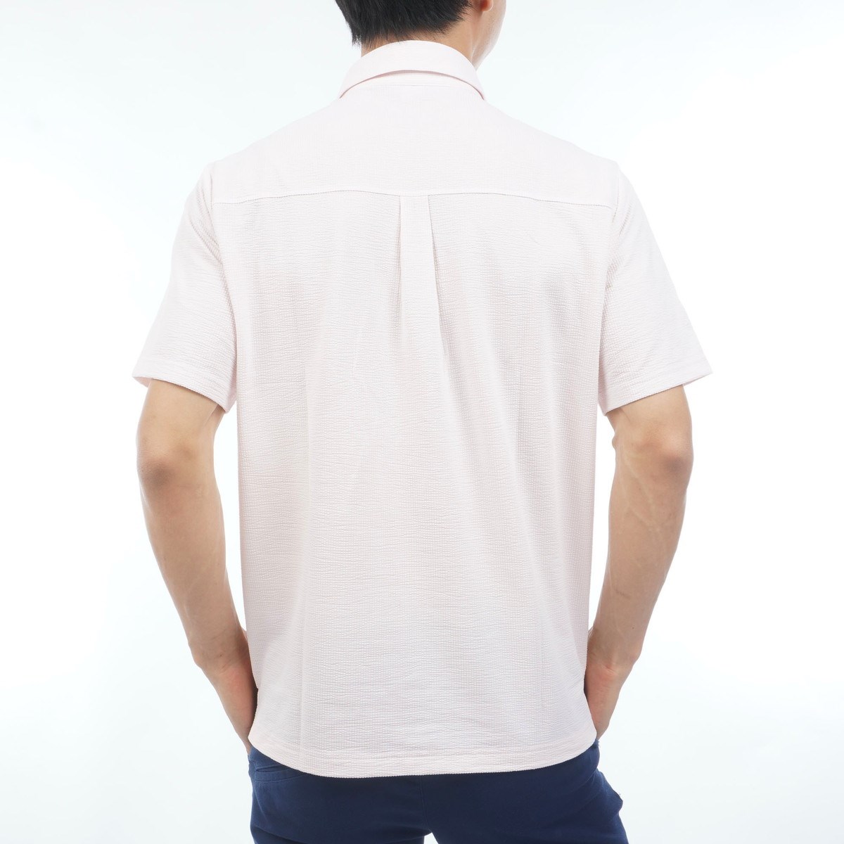 ・肌離れの良いシアサッカー素材を使用した、台襟付きの半袖ポロシャツです。