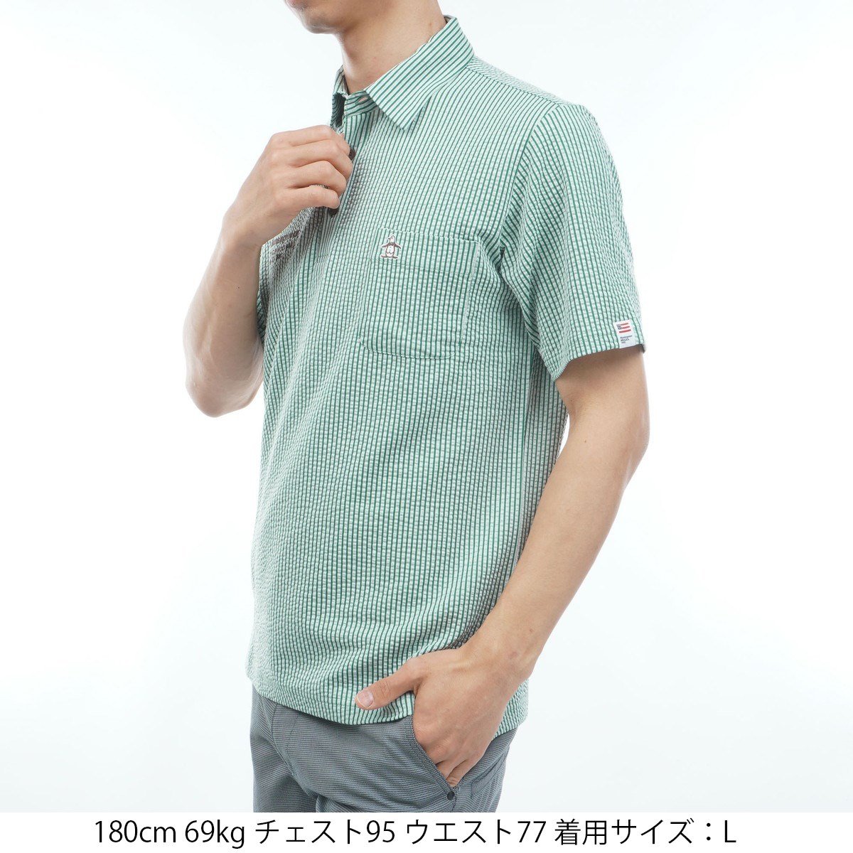マンシングウェア Munsingwear ストレッチシアサッカーストライプ台襟付き半袖ポロシャツ LL グリーン 00