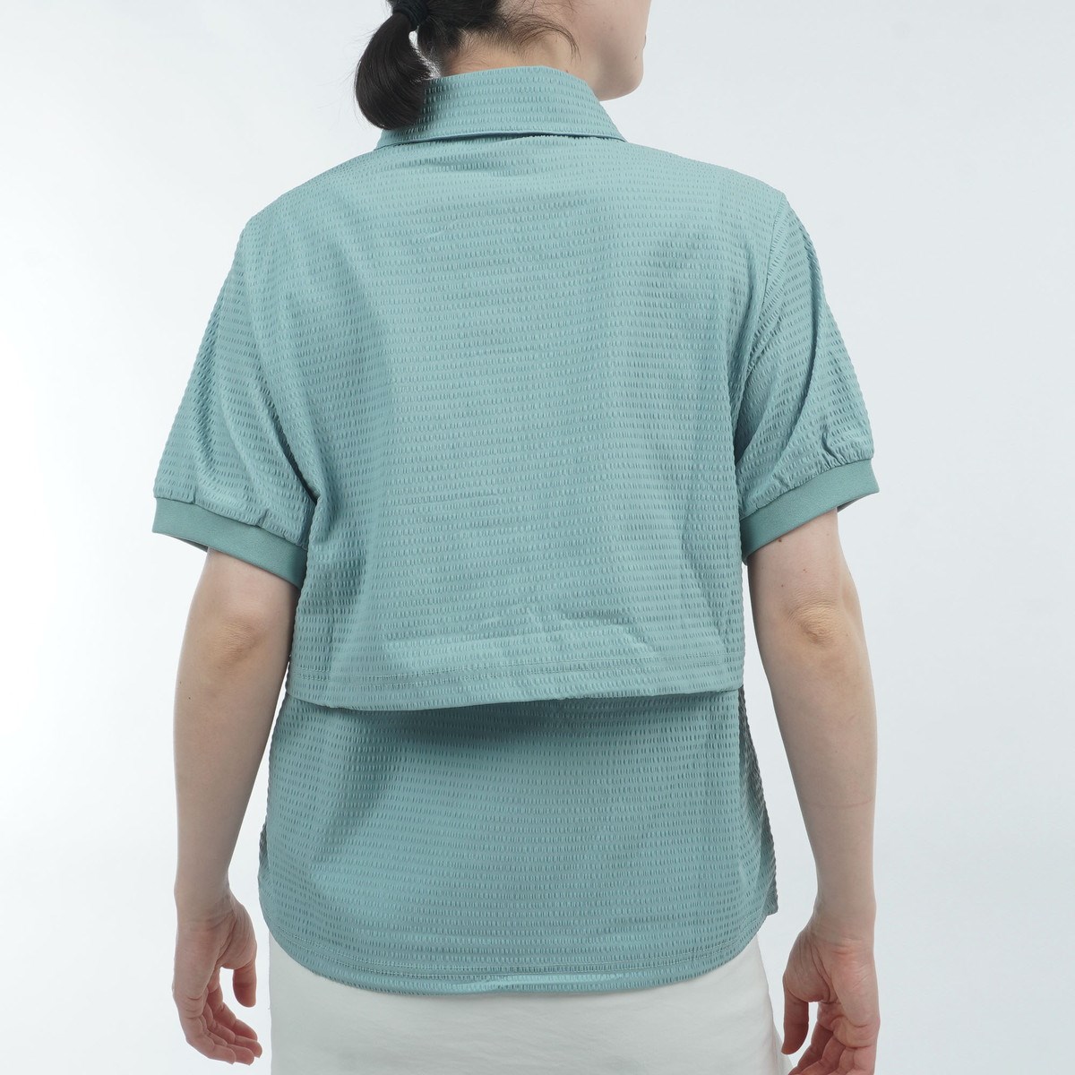 凹凸感のあるサッカー素材が肌へのベタつきを抑え、背中部分に備えたベンチレーションが衣服内の蒸れを効率よく逃がして真夏のラウンドでも驚くほど涼やかな着心地を実現します。
