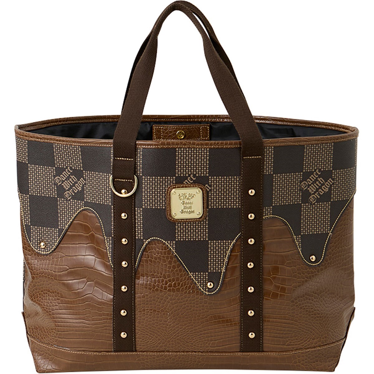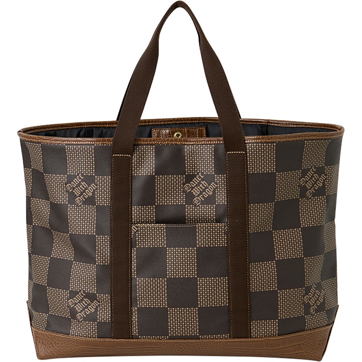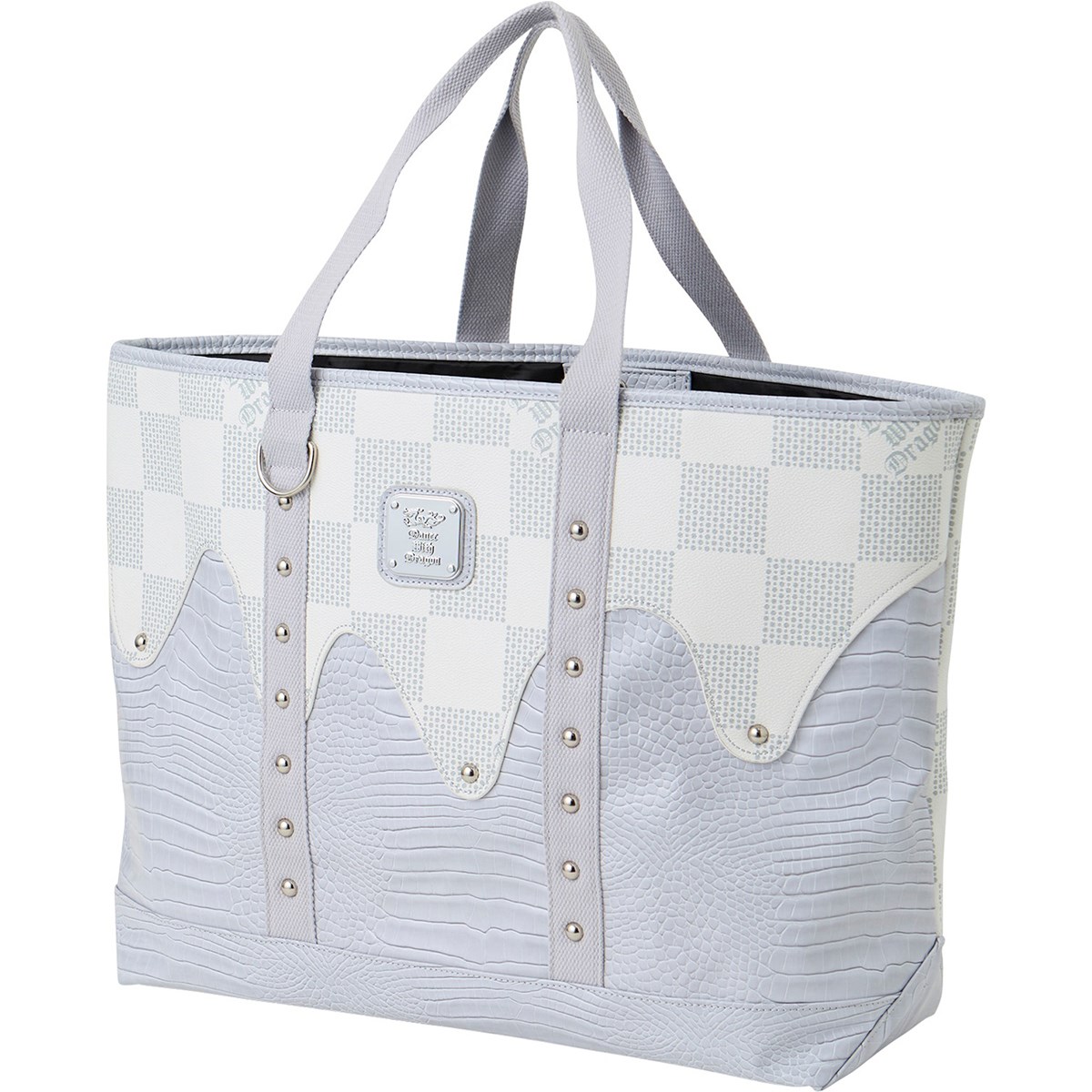 ドットで描かれたチェッカー柄とクロコ型押し合皮が、圧倒的な気品を漂わせるトートバッグ。