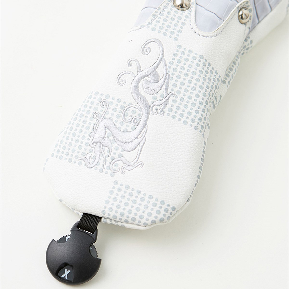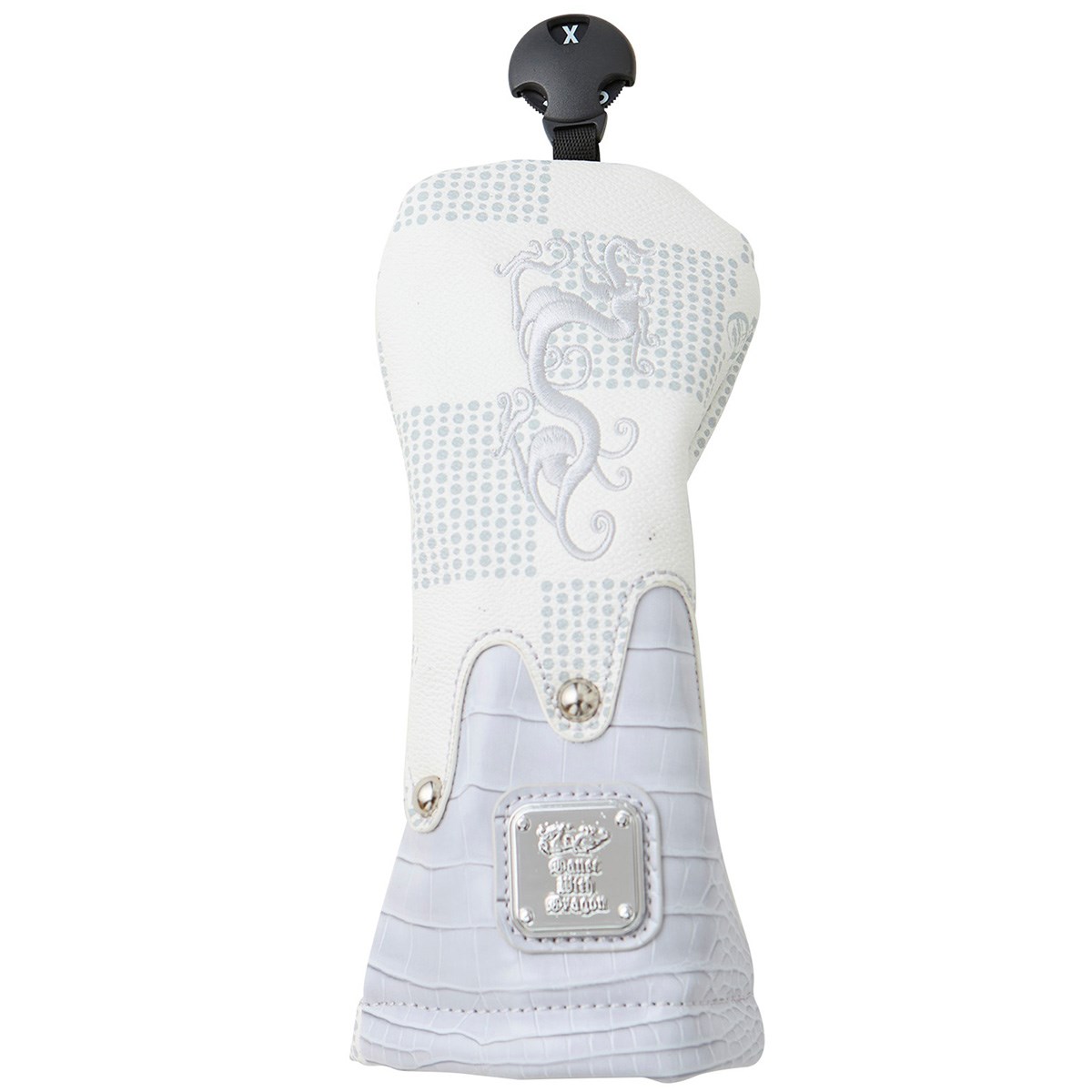ドットで描かれたチェッカー柄とクロコ型押し合皮が、圧倒的な気品を漂わせるUT用ヘッドカバー。