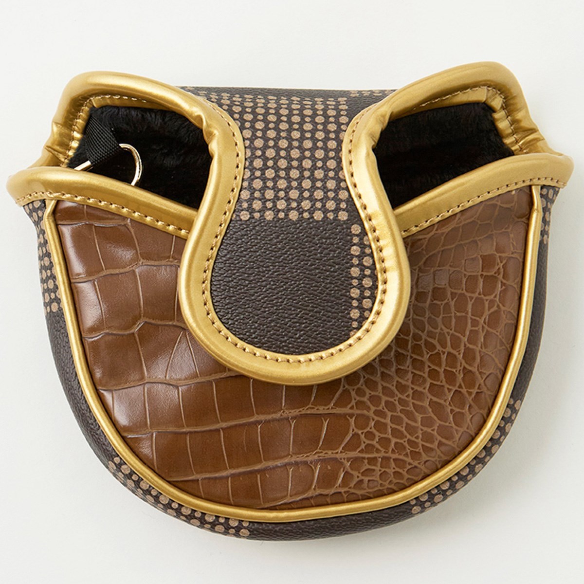 ドットで描かれたチェッカー柄とクロコ型押し合皮が、圧倒的な気品を漂わせるマレット型パターカバー。