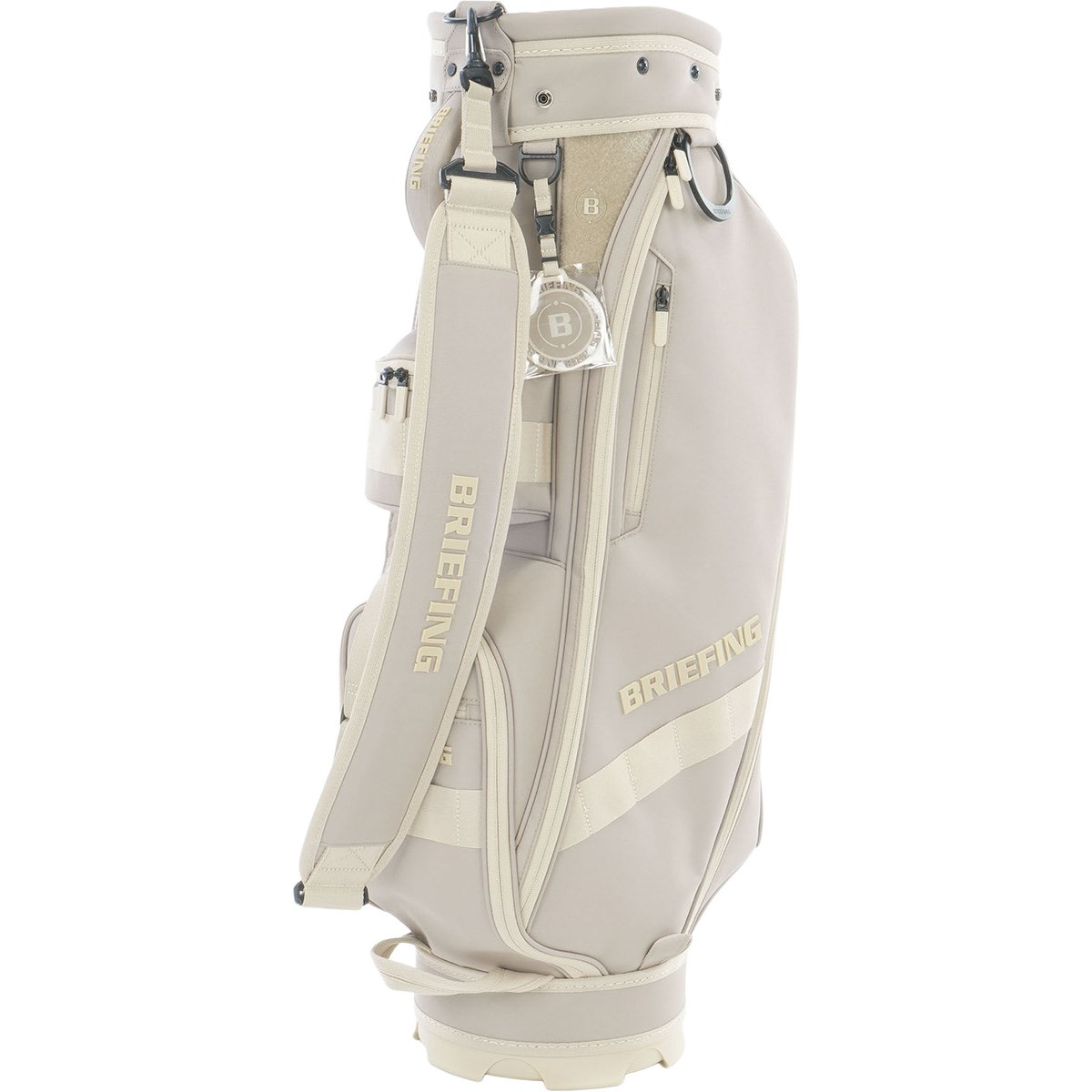 本体からパーツまでニュートラルカラーでまとめたカラーマッチングが特徴のキャディバッグ。
