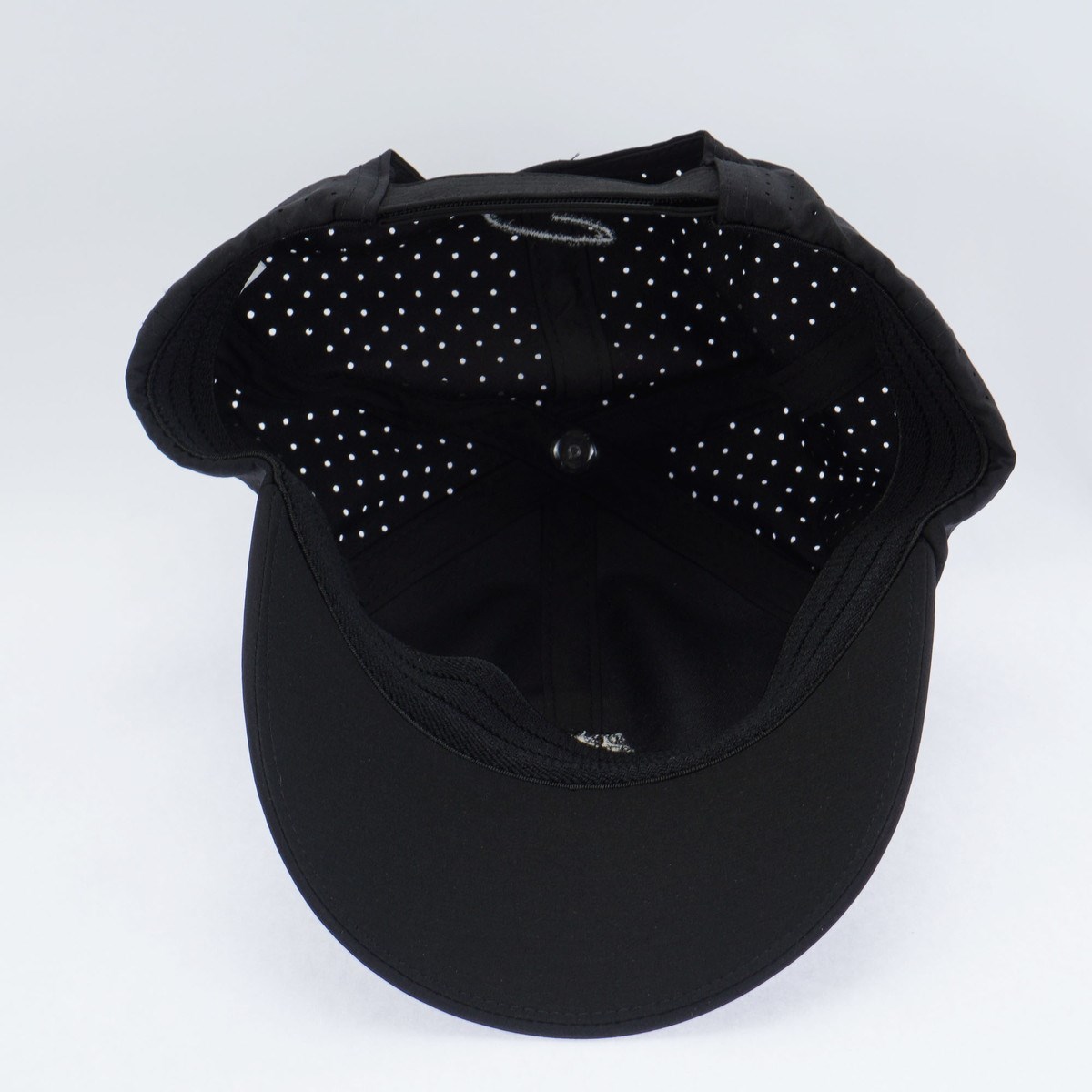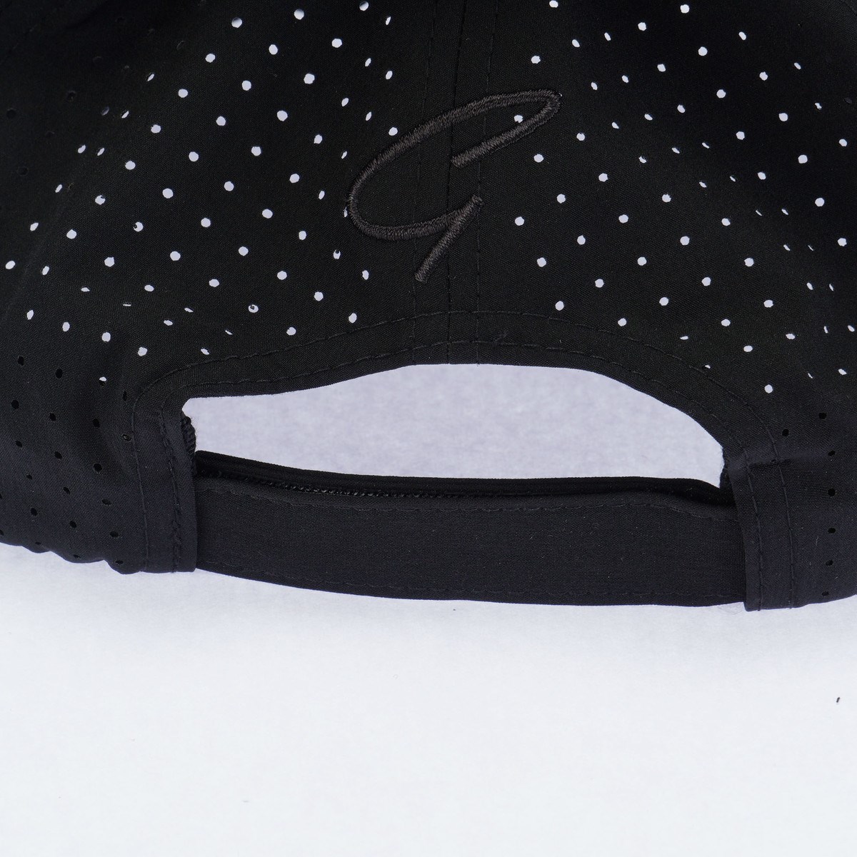 パンチング素材の使い勝手の良いシンプルなデザイン前後にロゴの刺繍を施しています