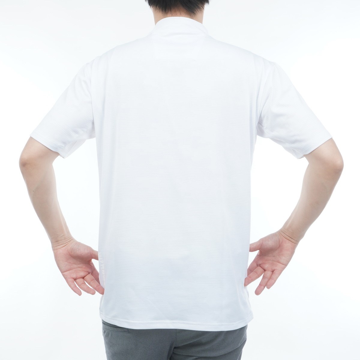 メッシュジャガードモックネック半袖シャツ(吸汗速乾・UV)通気性に優れたメッシュジャガード素材に上品なカモ柄調のプリントを施し、洗練されたスポーティーさを演出する機能派モックネック。