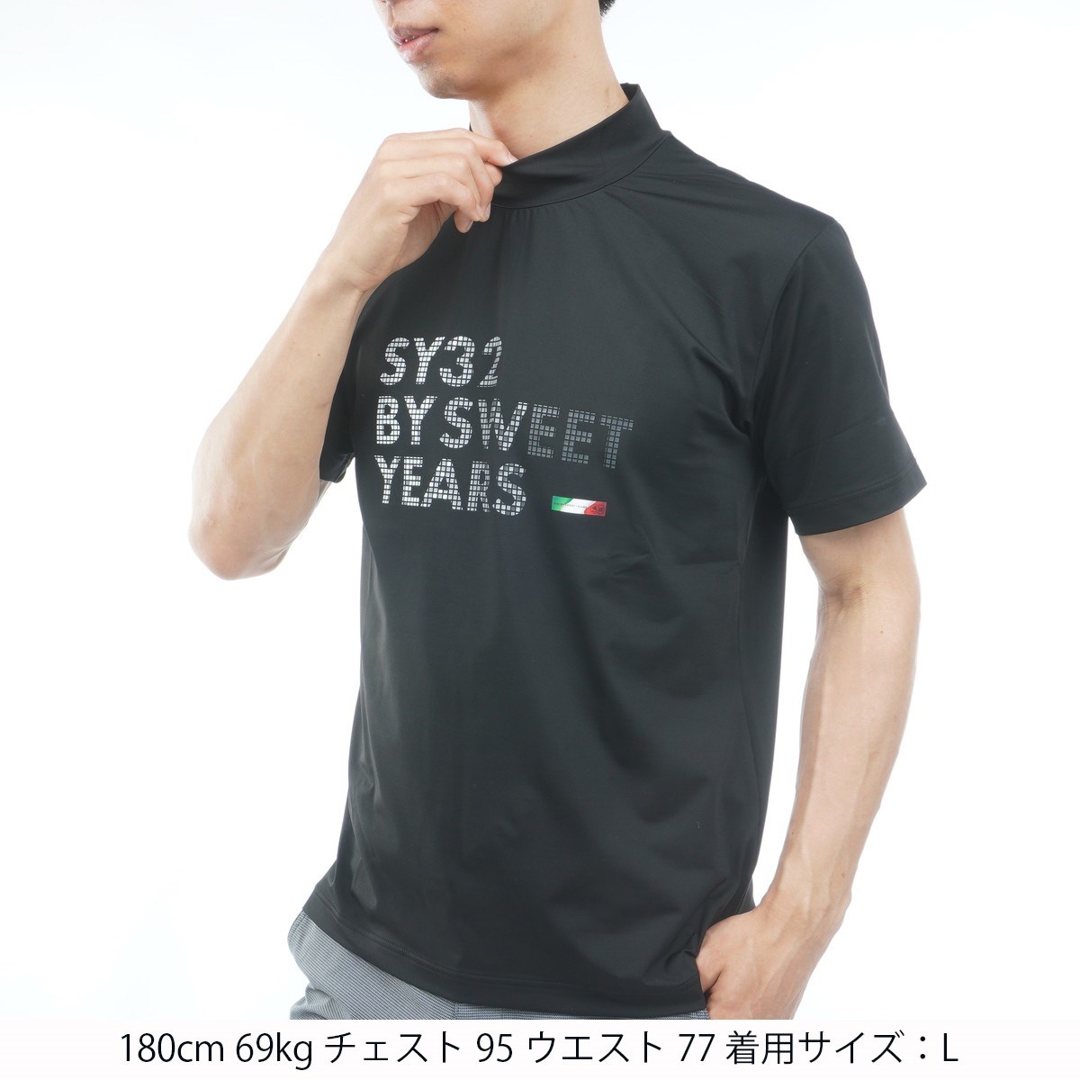 イタリアJL社(ジャージロマリエ)のマルチストレッチナイロン素材を使用したモックネック半袖シャツ。