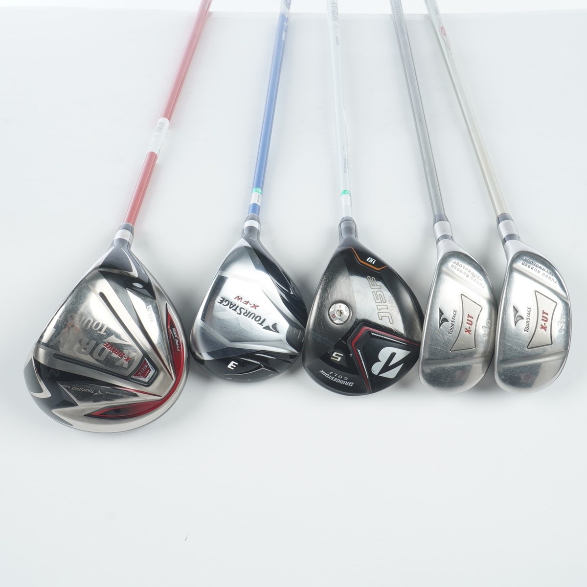 | 備考 | 〇ドライバー:X-DRIVE 705 TYPE455 ドライバー Tour AD DJ-6 ロフト:10.5 フレックス:S 長さ:45.25 ヘッドカバー:無 付属品:無 グリップ:- グリップ程度:やや汚れ クラブ重量:314± バランス:D2± 〇フェアウェイウッド:X-FW(2013) フェアウェイウッド Diamana B70 番手:3W ロフト:15 フレックス:S 長さ:42.5 セット内容:- グリップ:- ヘッドカバー:無 付属品:無 ライ角:- グリップ:- グリップ程度:汚れ・消耗 クラブ重量:339± バランス:D3± 〇フェアウェイウッド:J15F フェアウェイウッド FUBUKI AT60 番手:5W ロフト:18 フレックス:S 長さ:42.5 セット内容:- グリップ:- ヘッドカバー:無 付属品:無 ライ角:- グリップ:- グリップ程度:汚れ・消耗 クラブ重量:328± バランス:D3± 〇ユーティリティ:X-UT ユーティリティ TOURSTAGE TSU-60 番手:U3 ロフト:21 フレックス:S 長さ:39.5 セット内容:- グリップ:- ヘッドカバー:無 付属品:無 ライ角:- グリップ:- グリップ程度:汚れ・消耗 クラブ重量:359± バランス:D0.5± 〇ユーティリティ:X-UT ユーティリティ カーボンシャフト 番手:U4 ロフト:23 フレックス:判別不能 長さ:39 セット内容:- グリップ:- ヘッドカバー:無 付属品:無 ライ角:- グリップ:- グリップ程度:汚れ・消耗 クラブ重量:382± バランス:D1.5± 〇アイアンセット:G20 アイアン TFC 330i フレックス:SR セット内容:5本:#6 #7 #8 #9 W グリップ:- ヘッドカバー:無 付属品:無 グリップ:- グリップ程度:良 〇ウェッジ:ツアーB XW-2 SILVER ウェッジ スチールシャフト 番手:AW フレックス:S ロフト:50-08 セット内容:- グリップ:- ヘッドカバー:無 付属品:無 長さ:35.25 ライ角:- グリップ:- グリップ程度:汚れ・消耗 クラブ重量:463± バランス:D1± 〇ウェッジ:ツアーB XW-2 SILVER ウェッジ スチールシャフト 番手:SW フレックス:判別不能 ロフト:56-14 セット内容:- グリップ:- ヘッドカバー:無 付属品:無 長さ:35 ライ角:- グリップ:- グリップ程度:汚れ・消耗 クラブ重量:467± バランス:D2± 〇パター:STROKE LAB V-LINE MINI パター スチールシャフト 長さ:34 セット内容:- グリップ:- ヘッドカバー:無 付属品:無 ロフト:計測項目外 ライ角:- クラブ重量:534± グリップ:- グリップ程度:汚れ・消耗 バランス:- フレックス:計測項目外 〇キャディバッグ付 | ||||