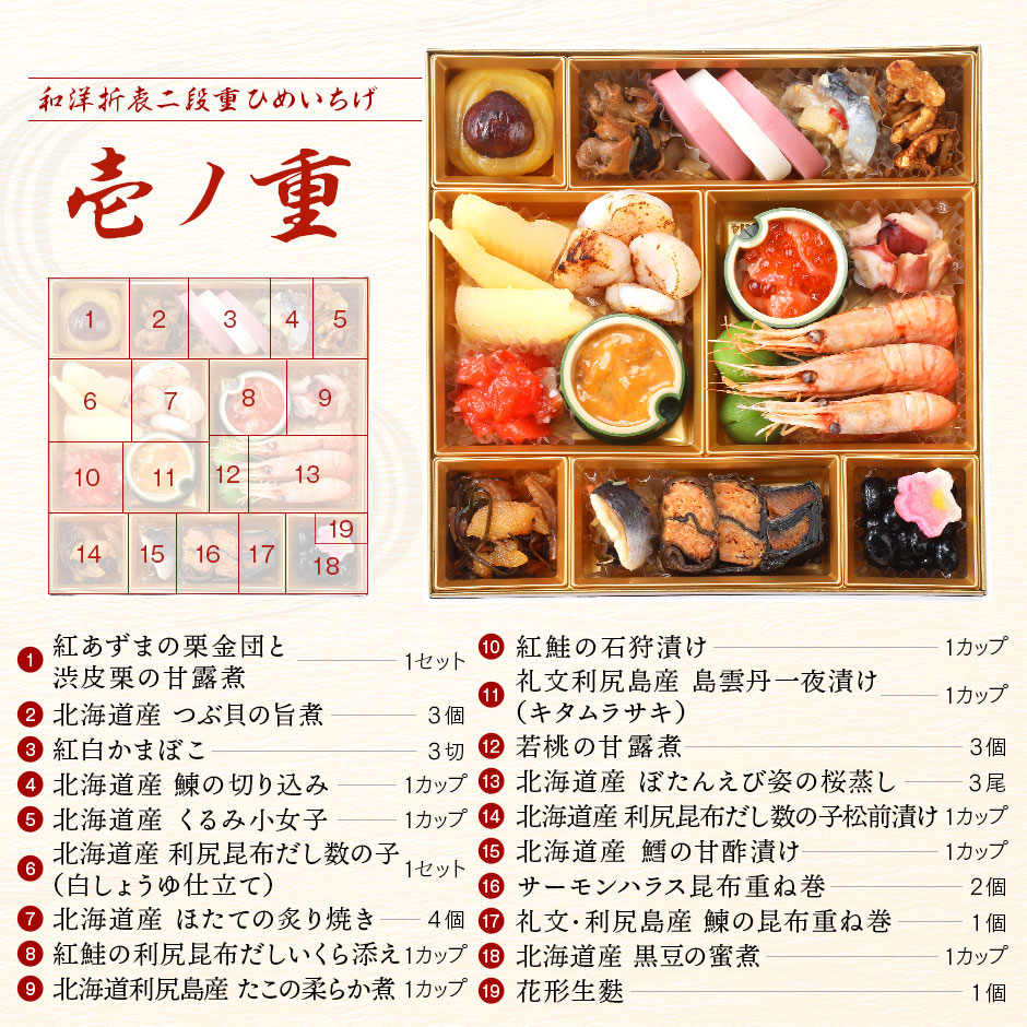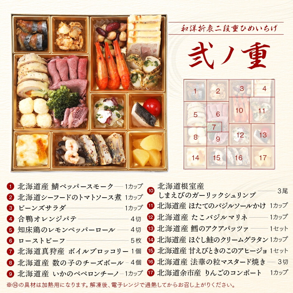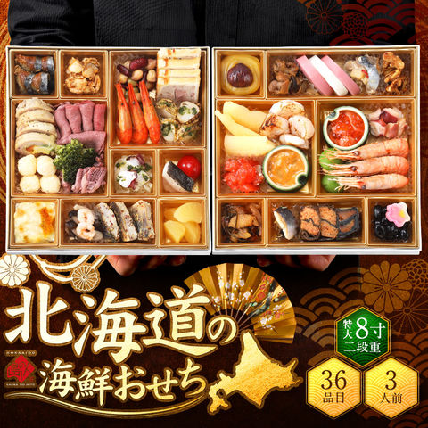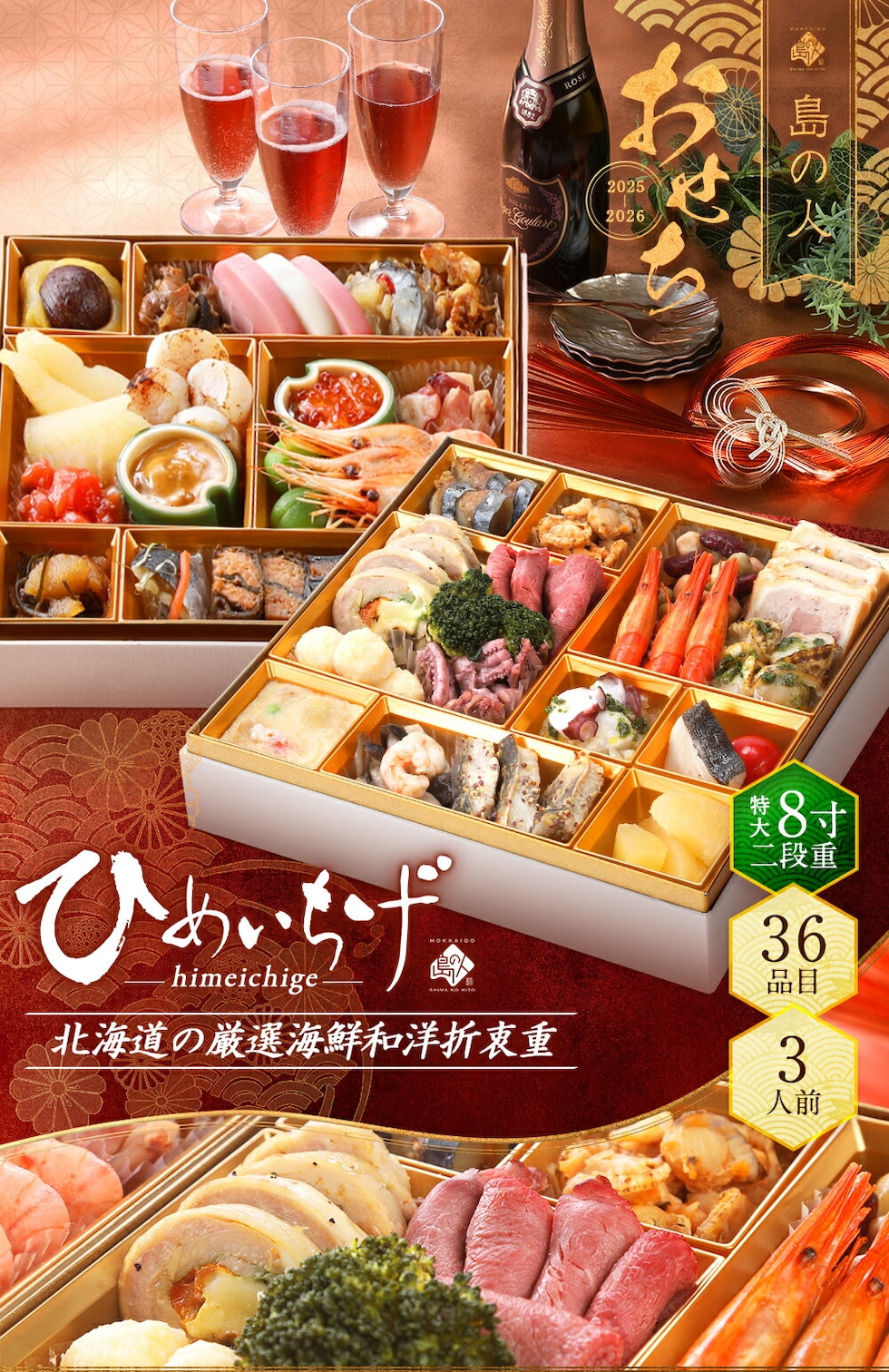 【先着700円OFFクーポン対象】北海道の和洋風おせち 8寸 二段重 3人前「ひめいちげ」全36品目 冷凍【送料無料】【12月30日〜12月31日お届け】【"島の人_和洋おせち"】[cd*]A70-01305-11131