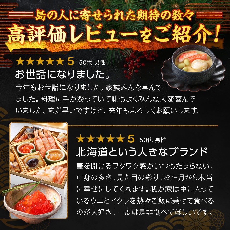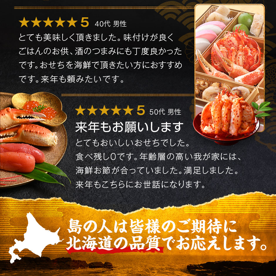 【翌日発送】北海道の高級海鮮おせち 2人前 二段重 全30品目「こざくら」6.5寸 冷凍【送料無料】[cd*]A70-01341-11131のレビュー