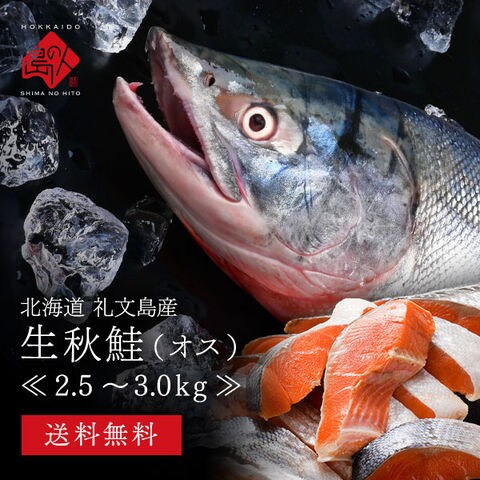 北海道 礼文島産 生秋鮭 オス 2.5~3.0kg前後【送料無料】 旬の秋鮭を丸ごと一本お届け![cd*]A00-06007-11121