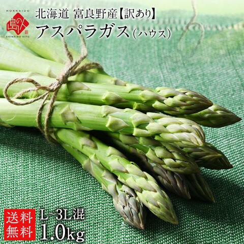 北海道 富良野産 朝もぎハウスグリーンアスパラ 1.0kg(L-3L混サイズ) 【訳あり】【送料無料】[cd*]B19-04084-11121