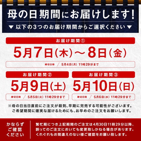 | 配達日 | 選択日期間にお届け | 熨斗 | のし対応不可です。 |