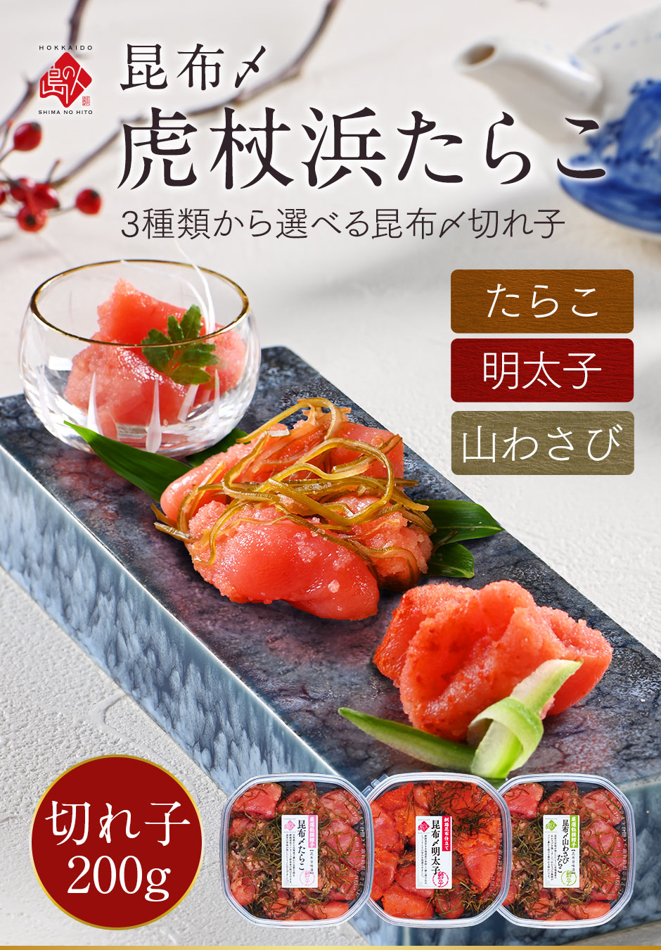 北海道 虎杖浜産 昆布〆切れ子(たらこ) 200g