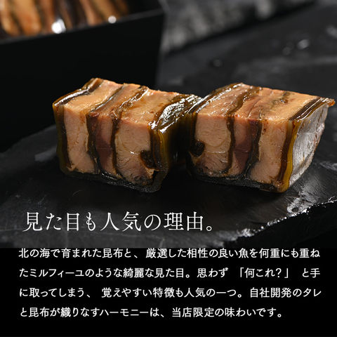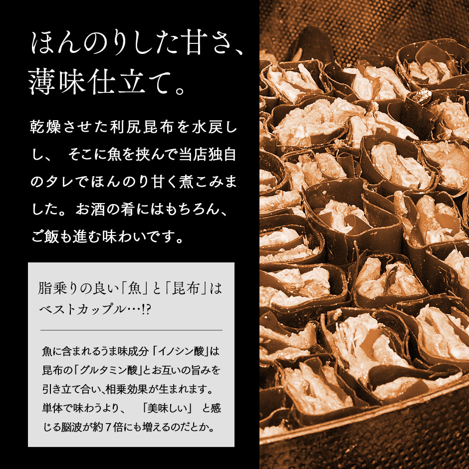 原材料:鯖、ニシン 、サーモントラウト、昆布(北海道産(北海道産利尻昆布15%使用))、砂糖、醤油、水あめ、みりん(原材料の一部にさば、大豆、小麦を含む)