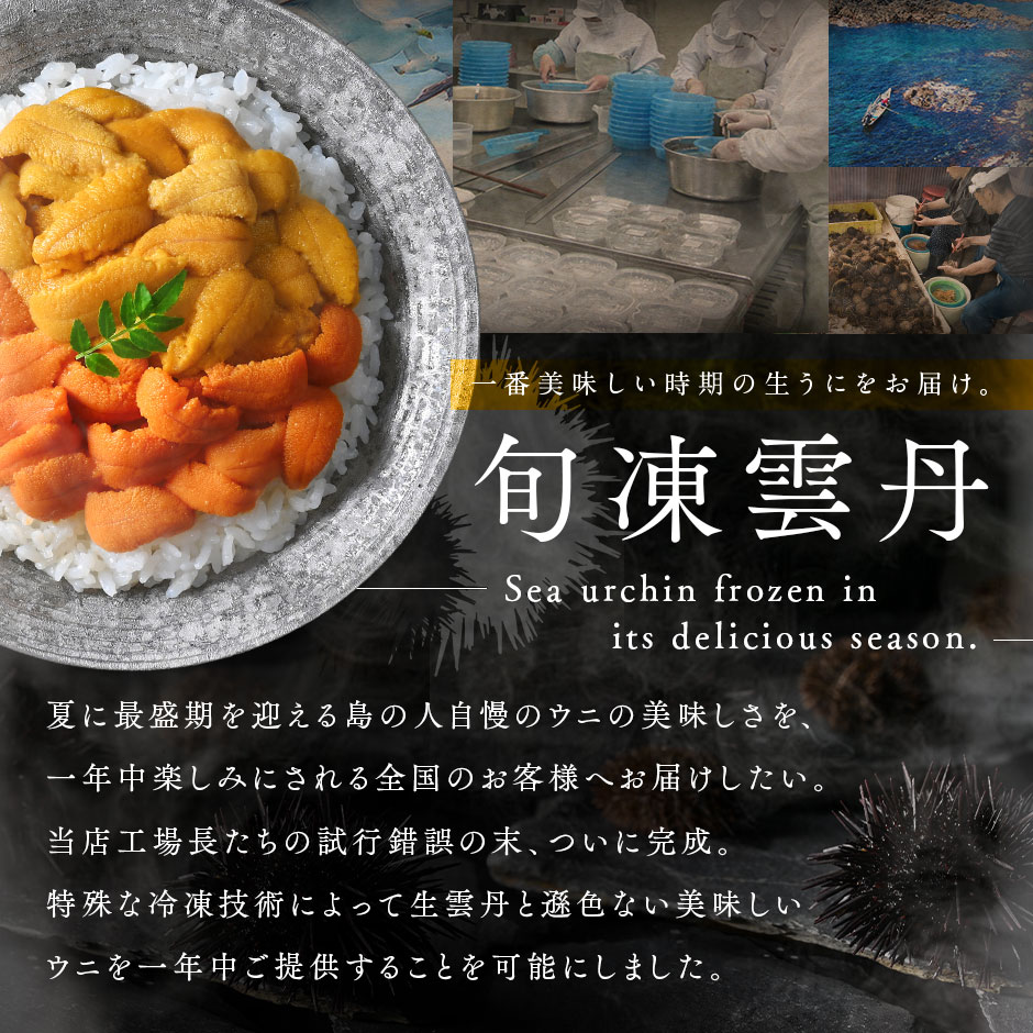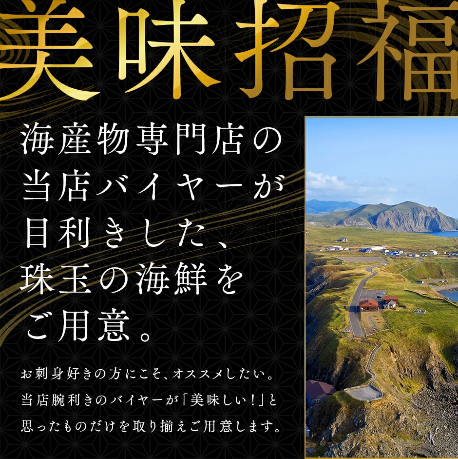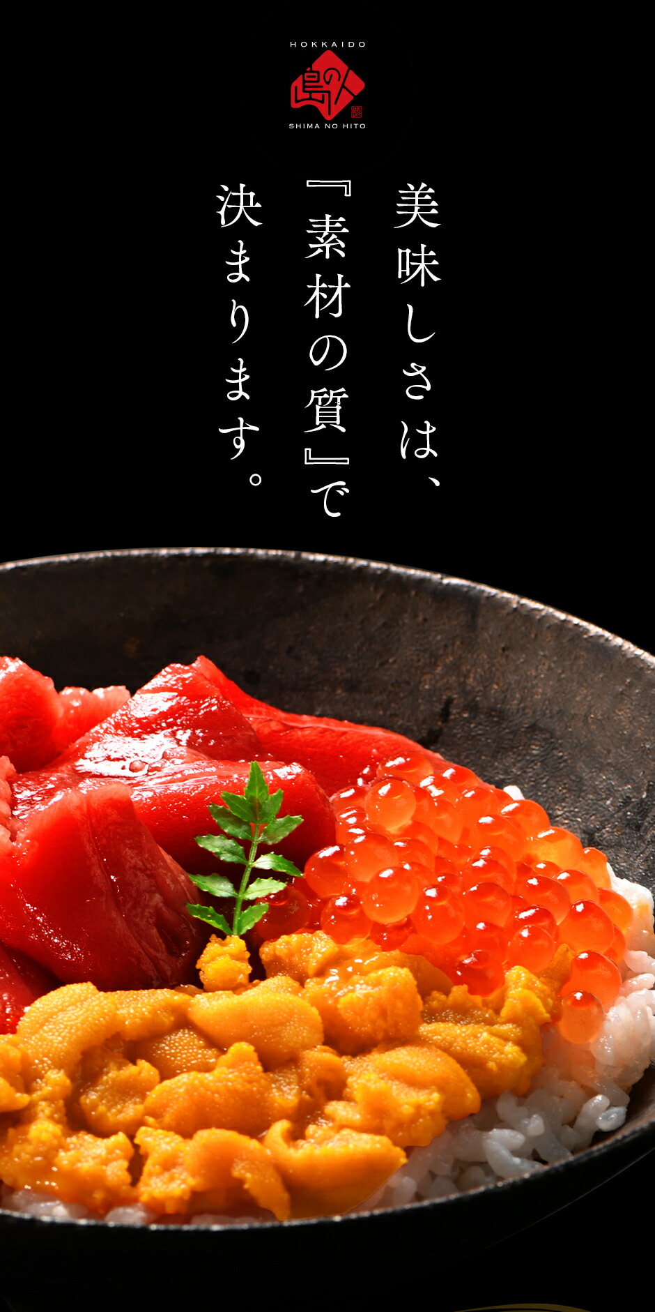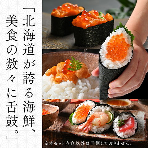 | 産 地 | うに:北海道 礼文・利尻島産 本まぐろ:北海道 松前産 鮭いくら:北海道 斜里産 |