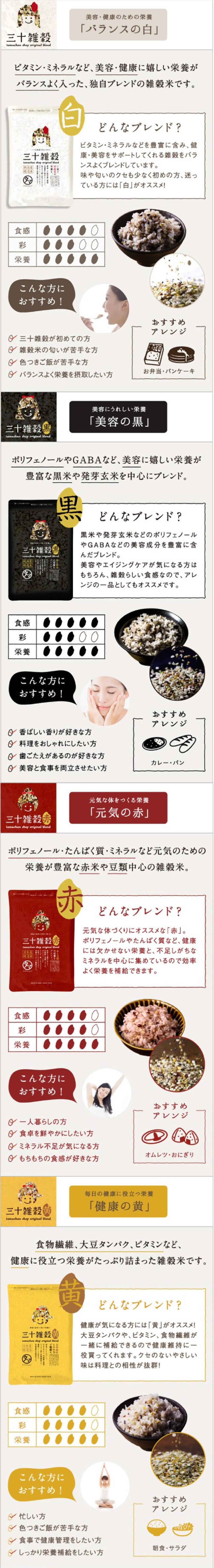 三十雑穀(白・黒・赤・黄)各300gの4種セット