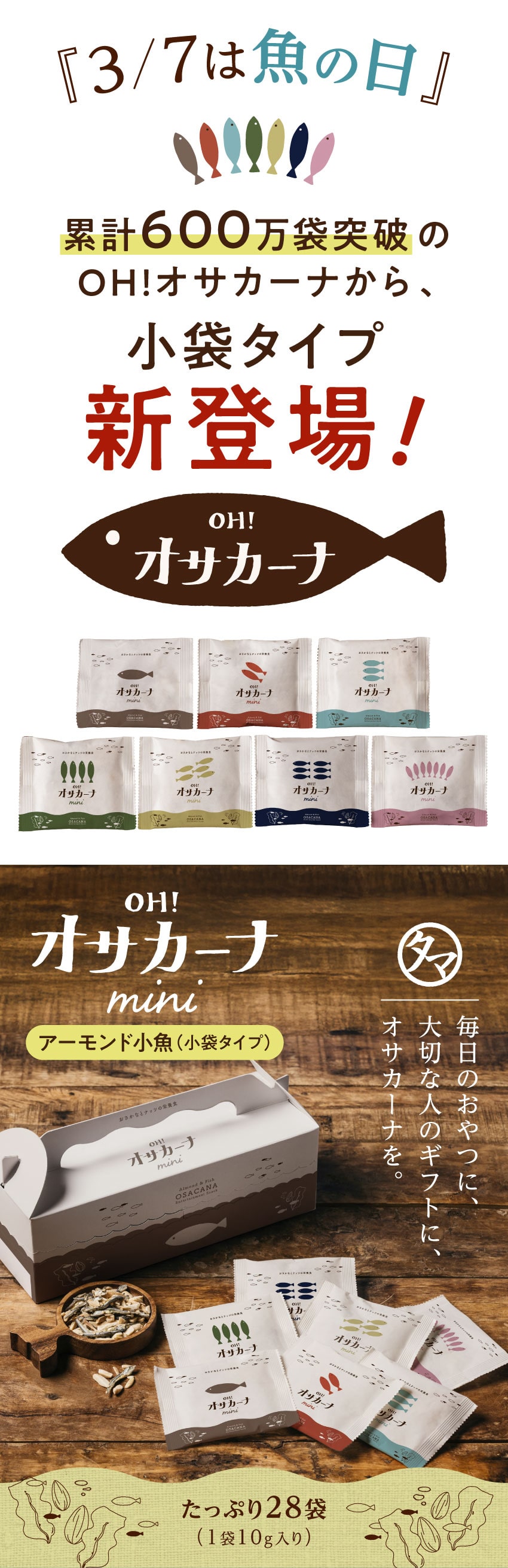 OH!オサカーナ mini 280g(10g×28袋)小袋タイプ アーモンド小魚 アーモンドフィッシュ おやつ いりこ アーモンド 小魚 片口イワシ 栄養おやつ おやつ おつまみ お菓子 送料別 宅配便 ギフト 10月1日より順次発送