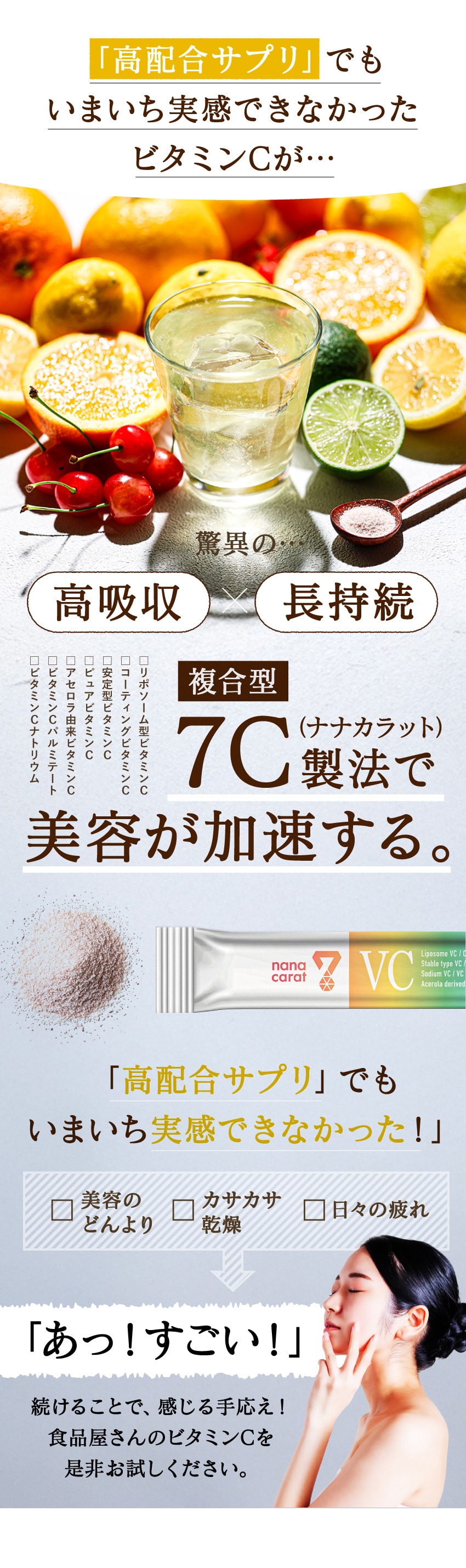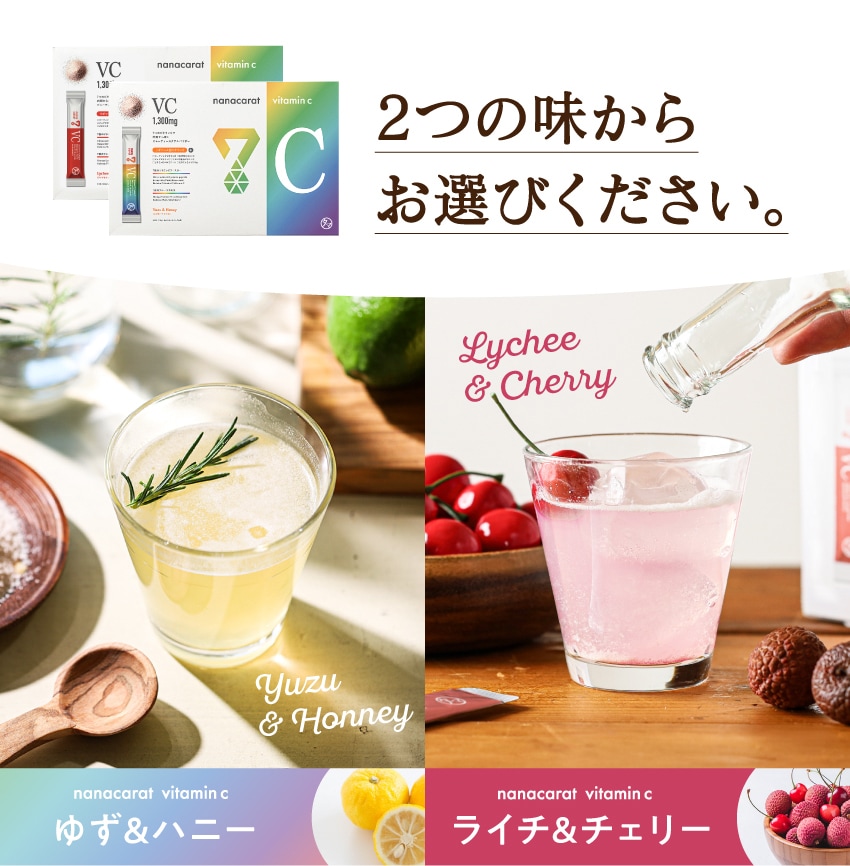 【送料無料】nanacarat vitamin c (ナナカラットビタミンC) ライチ&チェリー味 30包セット 高品質リポソームをはじめ1300mgの7種類ビタミンCを配合し植物由来サポート成分も1包で叶える7Cカクテル製法の美味しいビタミンCパウダー